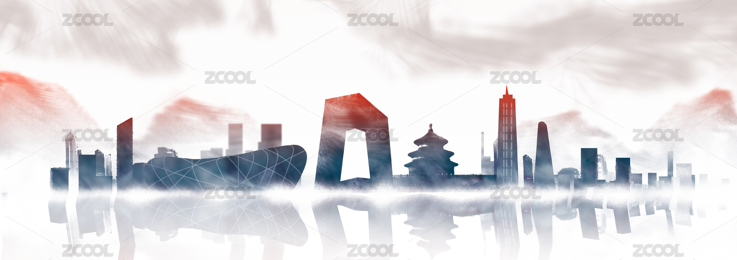 新中式中秋国庆节北京地标光晕剪影海报模板