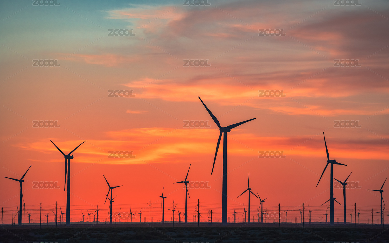 中国甘肃省兰州市郊外戈壁风车