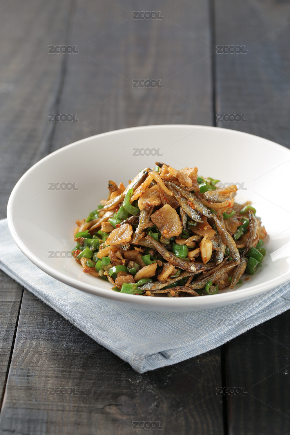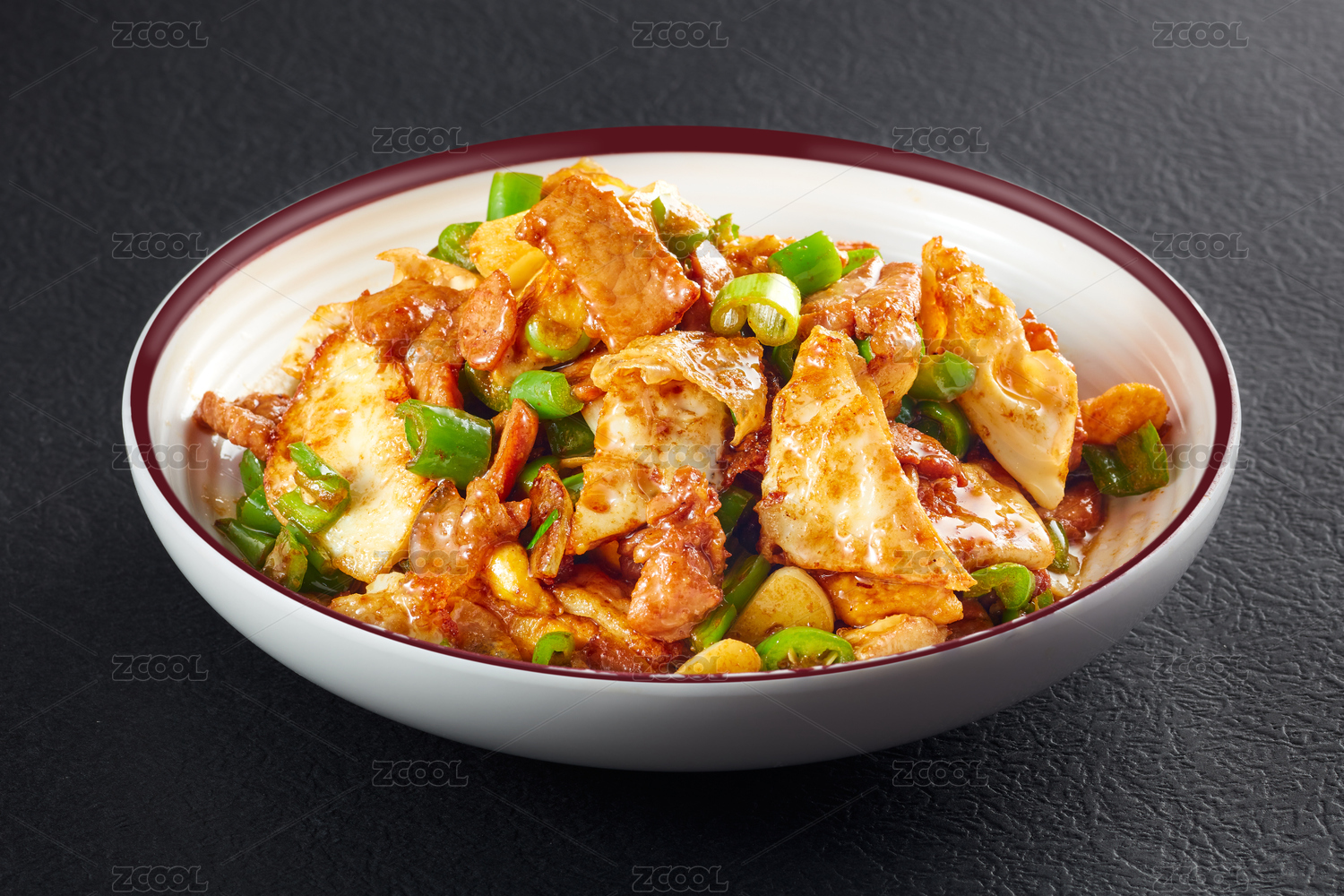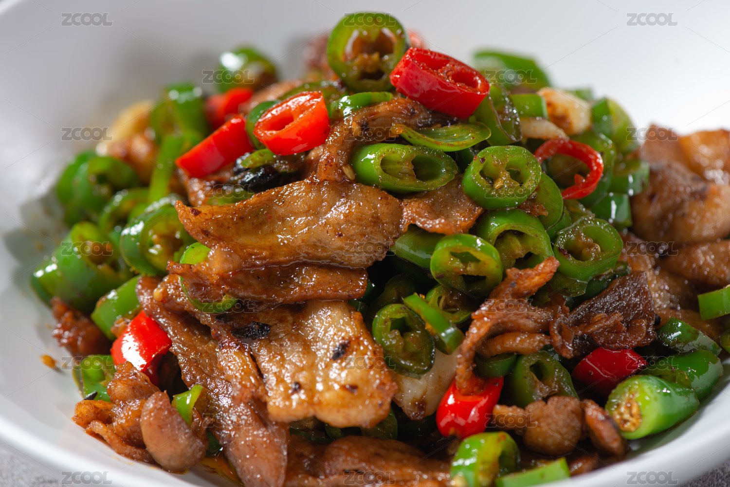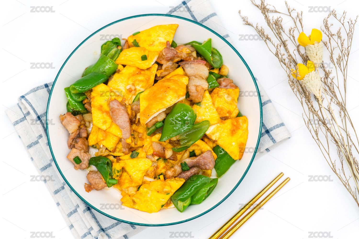 装在白色大碗里面的农家一碗香辣椒鸡蛋炒肉
