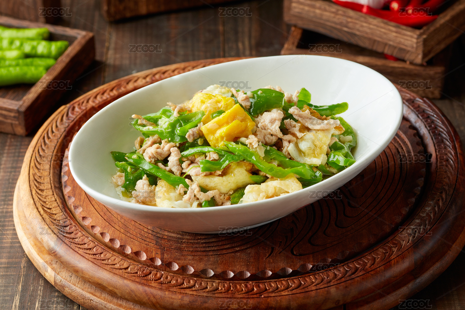 木背景湖南家常菜一碗香辣椒炒鸡蛋