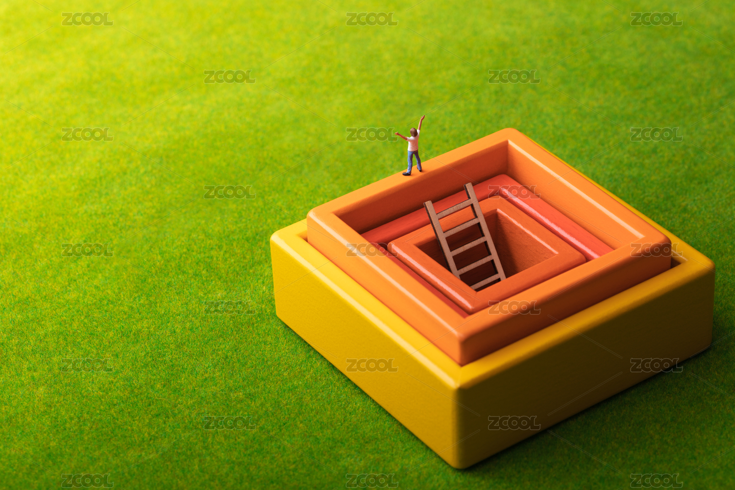 从梯子爬出深坑展开双臂拥抱阳光