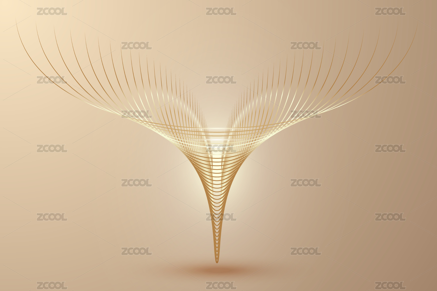 金色线条形如展开的翅膀或叶片花瓣抽象图形