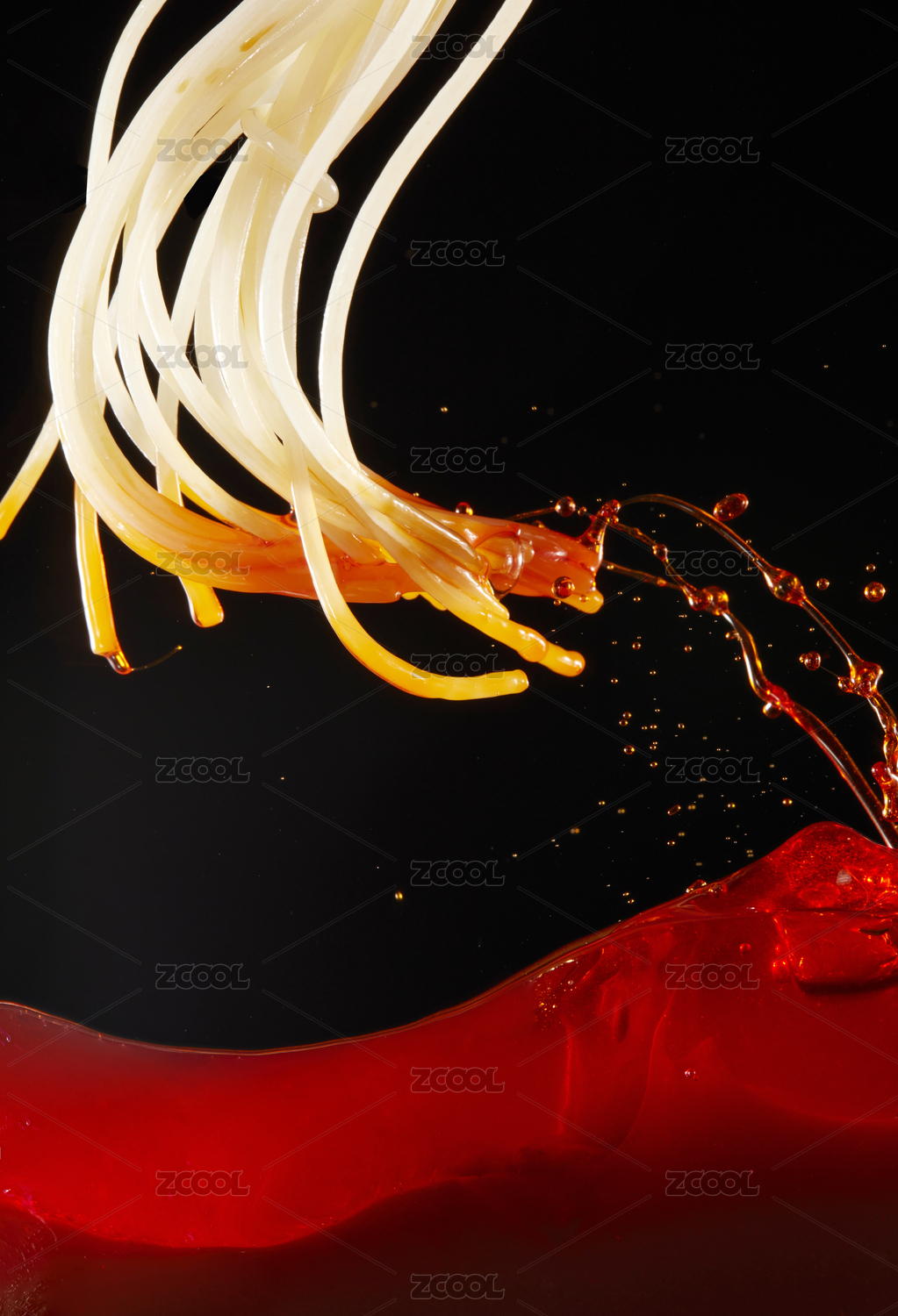 特写跳跃的米粉,带着螺蛳粉的红油汤汁