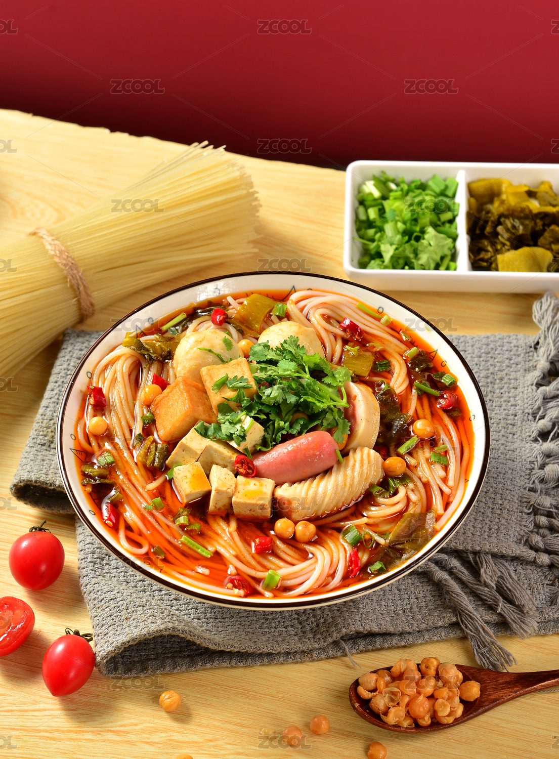 盘子里的凉菜菜品麻辣红油米粉米豆腐