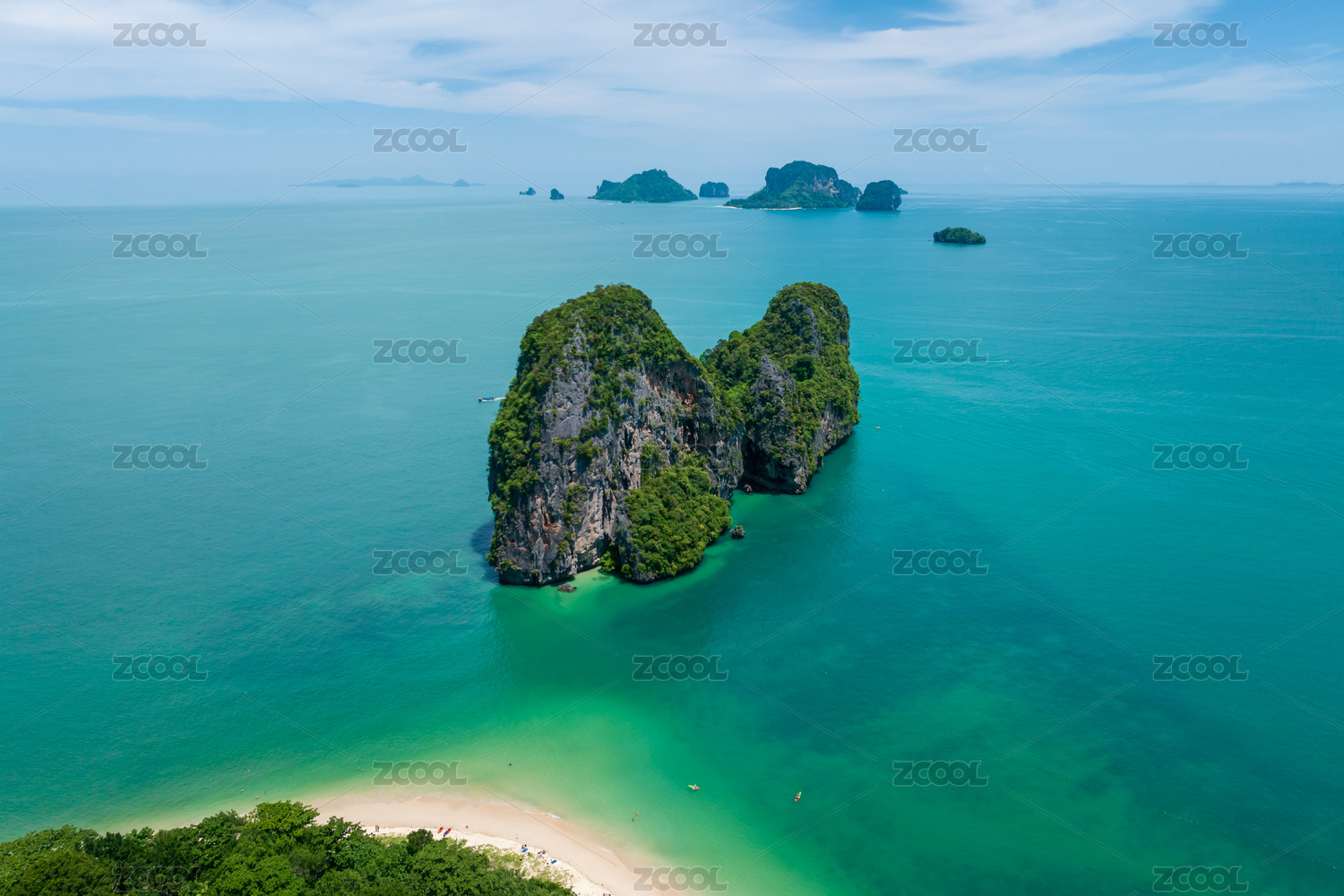 泰国甲米莱雷海滩航拍热带岛屿自然风光