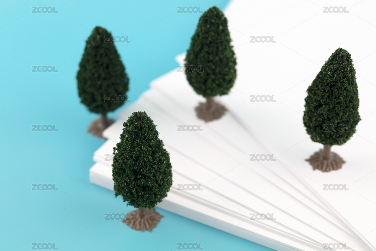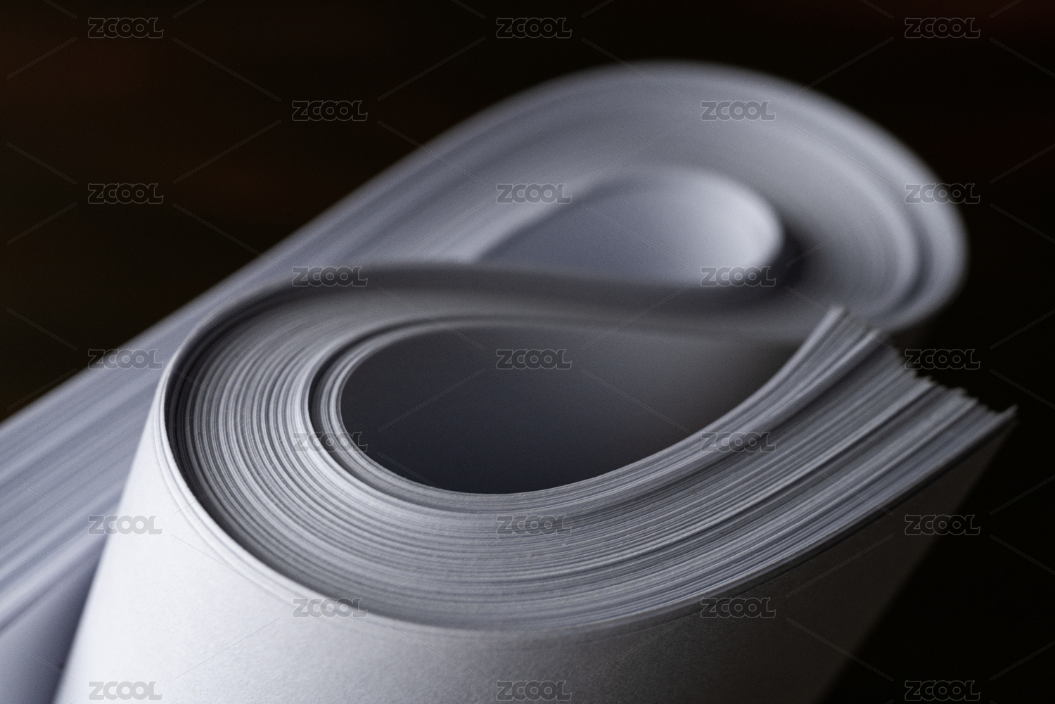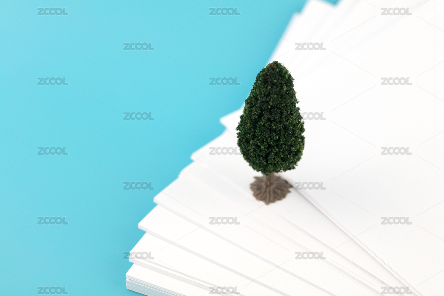 蓝色背景中白纸和铅笔塑造的光影曲线