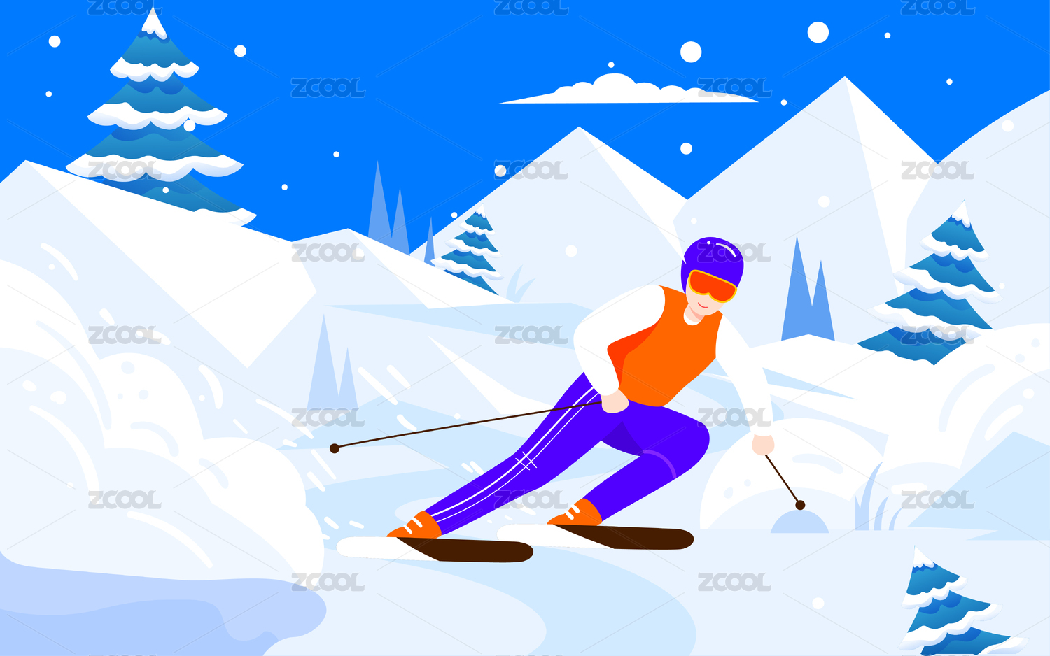 冬奥会滑雪项目插画人物冬天户外运动海报
