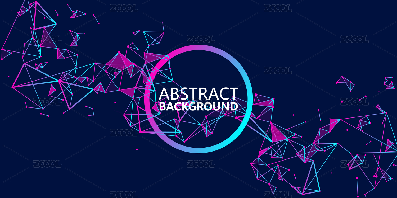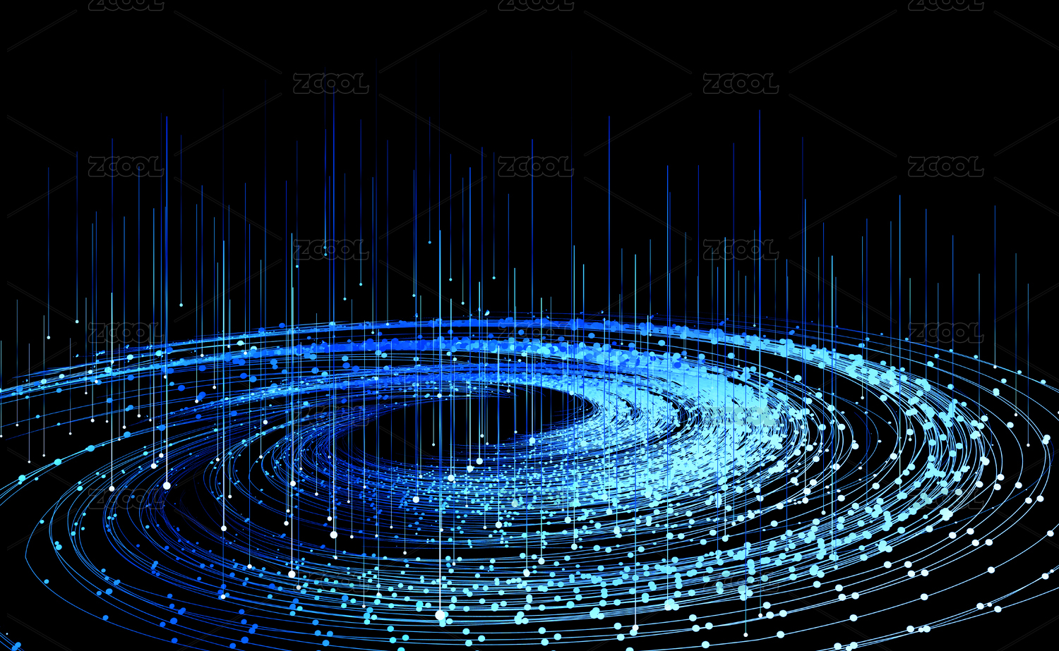 互联网技术、通过点线面链接的抽象图、科技背景图、蓝色圆形