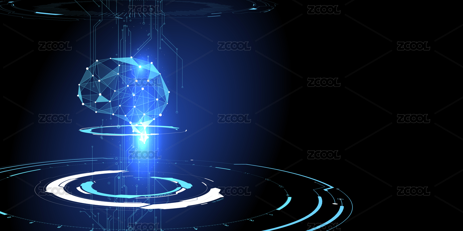 三维界面科技技术、科幻场景、未来科技、蓝色酷炫海报背景。