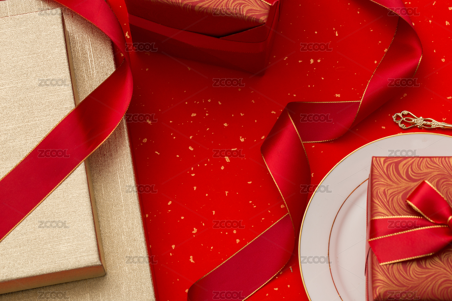 礼盒礼物盒子金色红色丝带化妆品背景海报素材