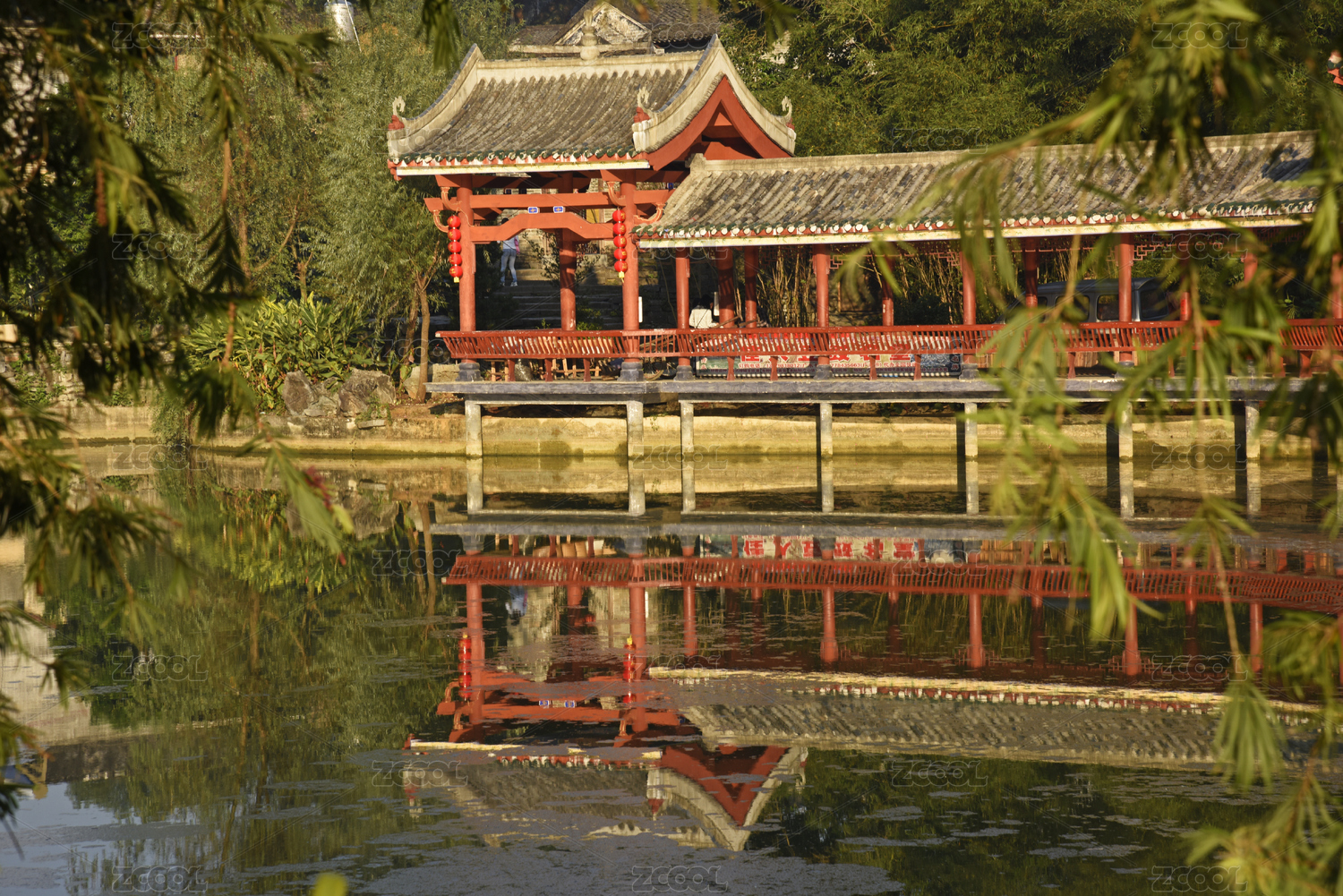阴雨天拍摄的黄姚古镇带龙桥