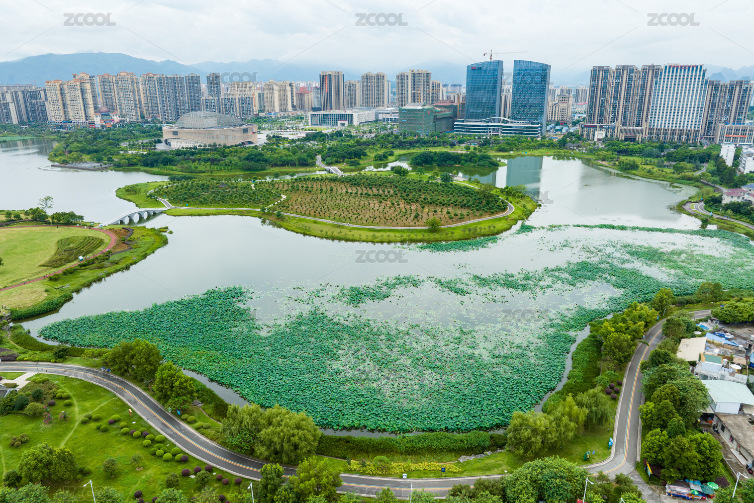 中国广西贺州市爱莲湖湿地公园风光