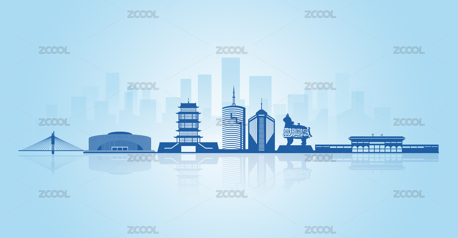 中国广西贺州市地标建筑剪影城市天际线背景