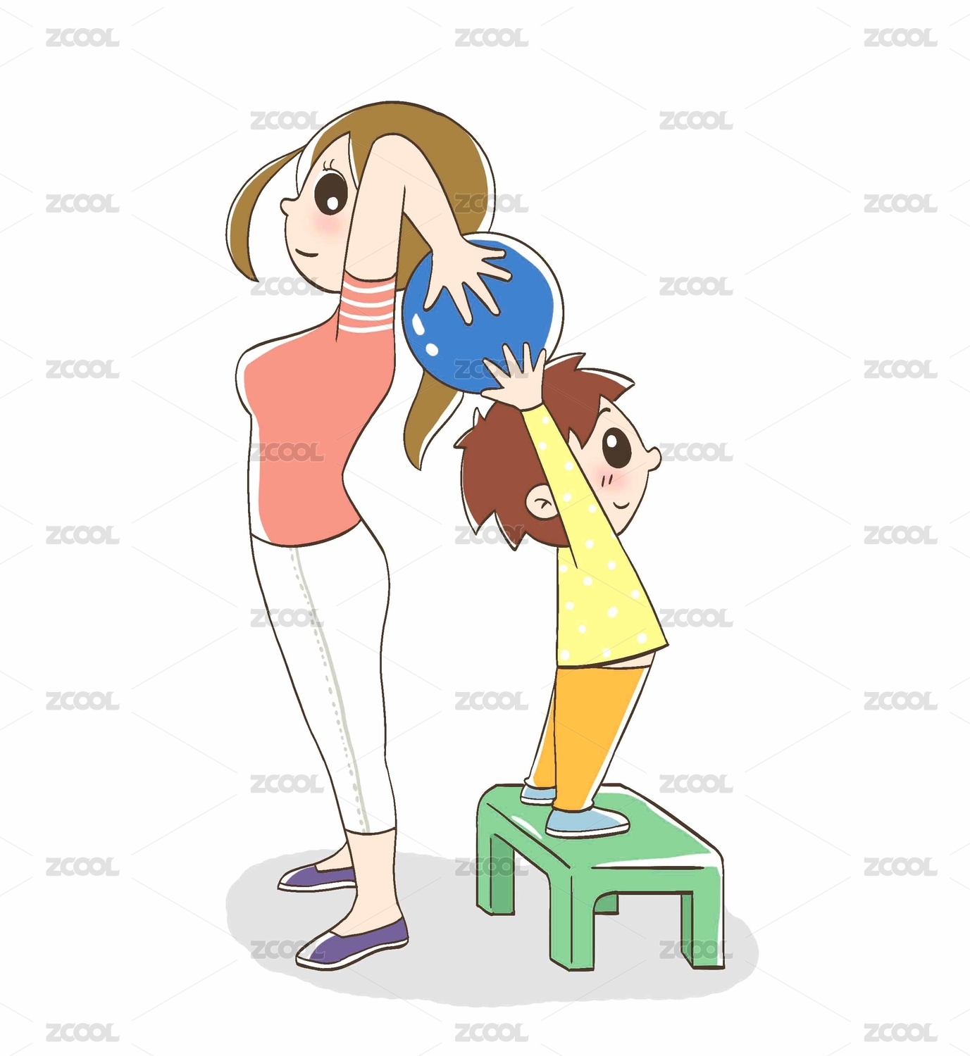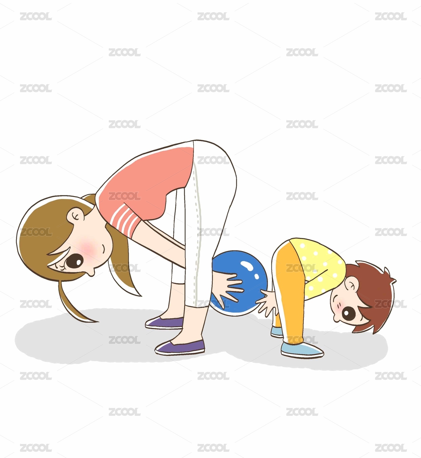 妈妈和孩子在玩传递球的互动游戏