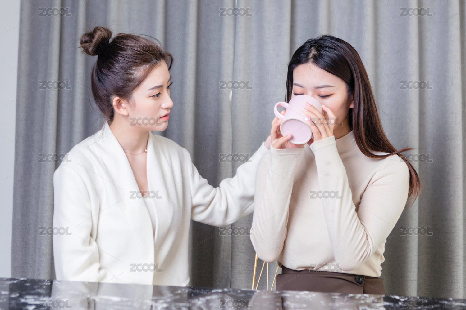 美女正在帮自己的闺蜜传递温水