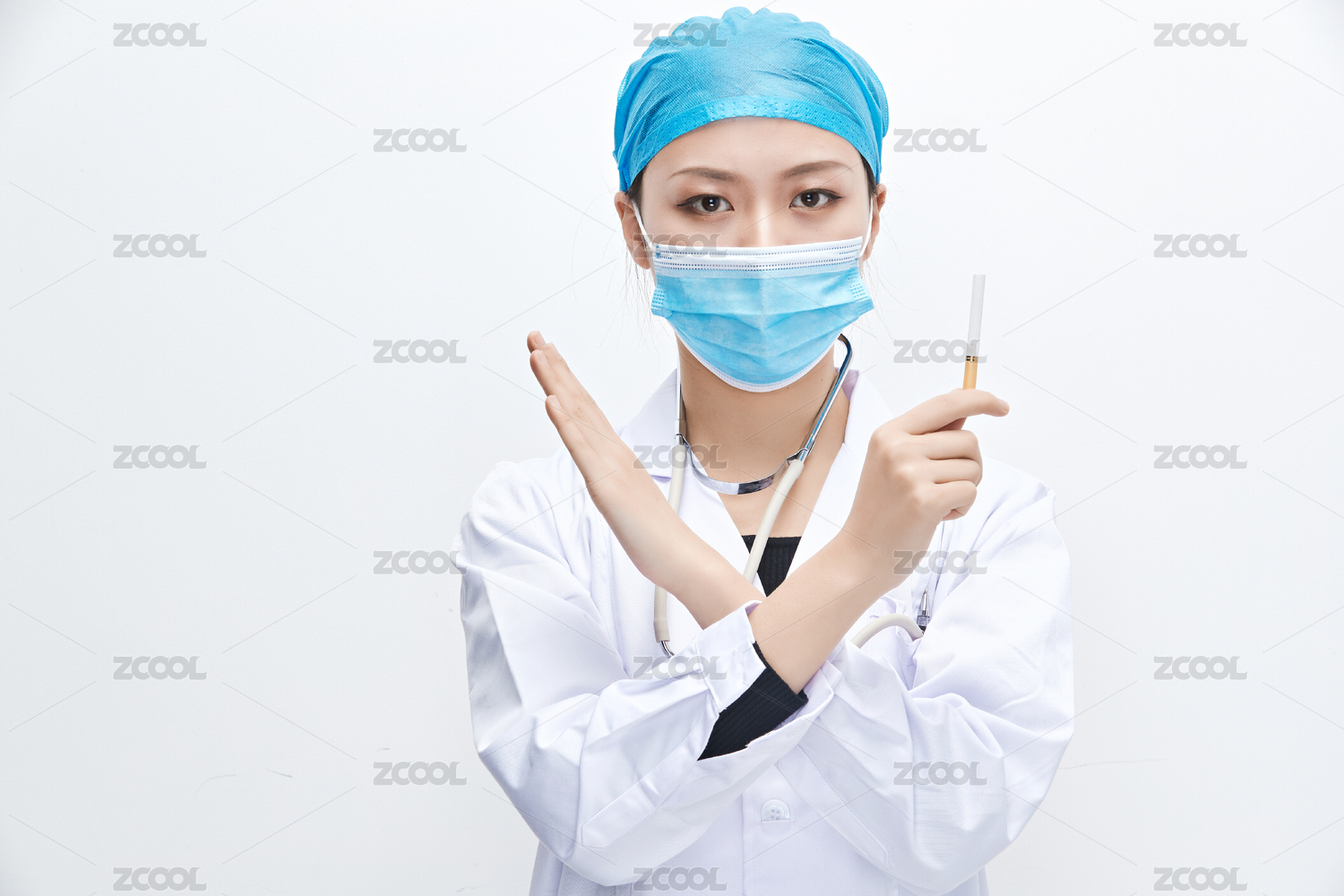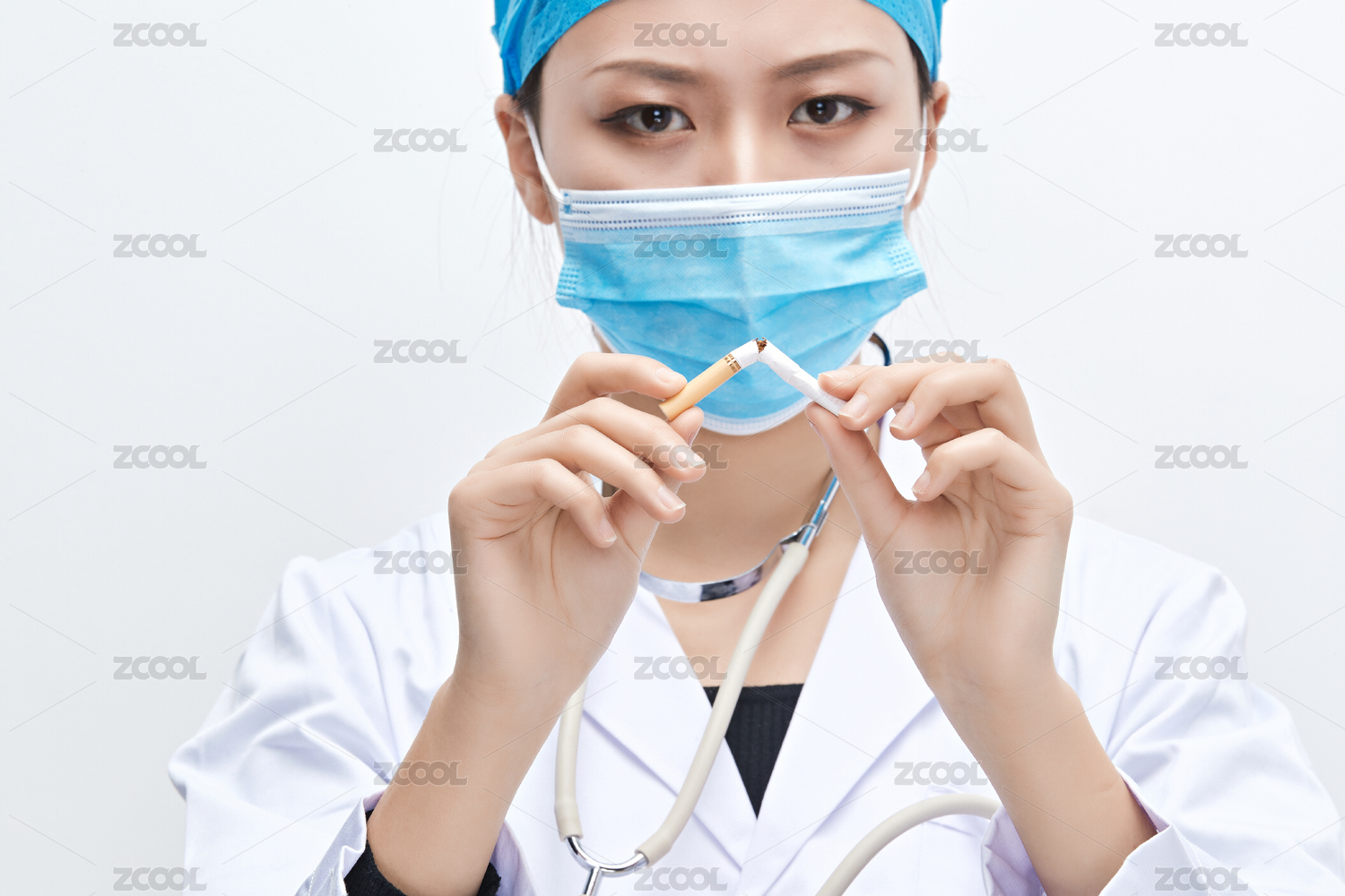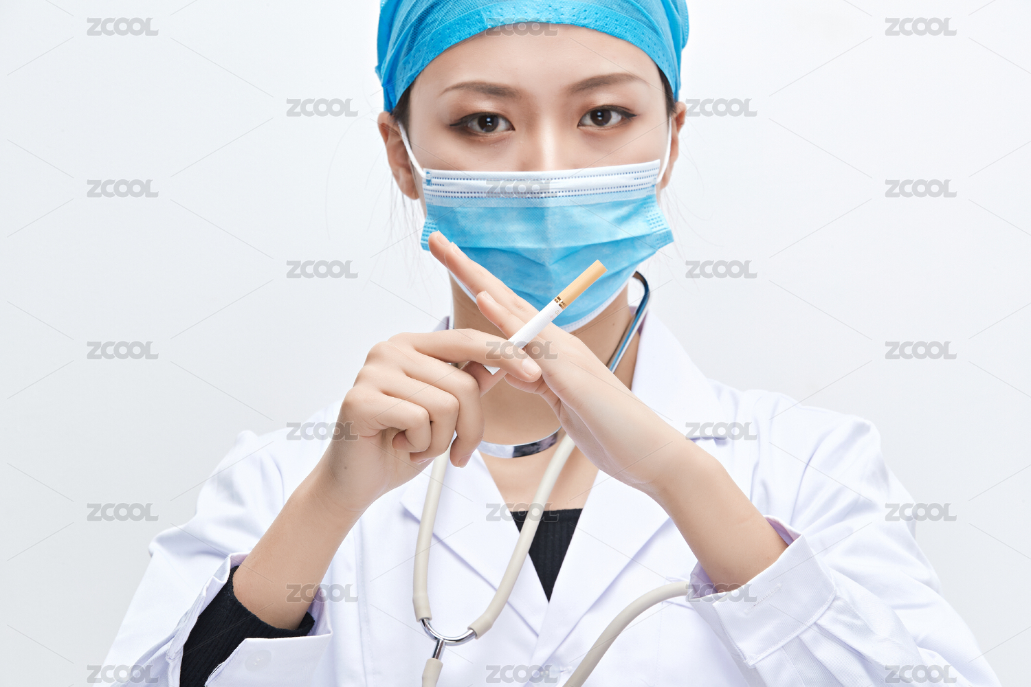 白色背景下传递传递吸烟有害健康信息的医生