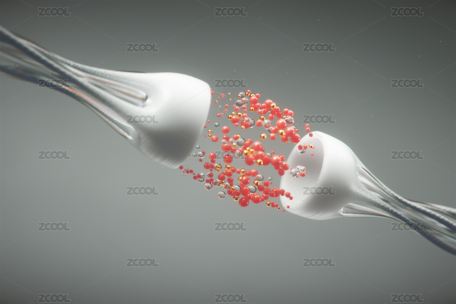 抽象的神经树突,神经递质,模拟脑神经信息传递的过程,高科技生物技术的概念。