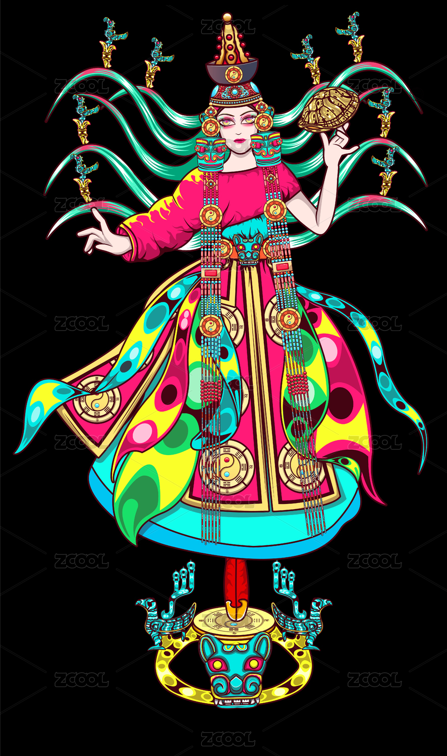 三星堆女性占卜师蒙古文化师现代潮流插画