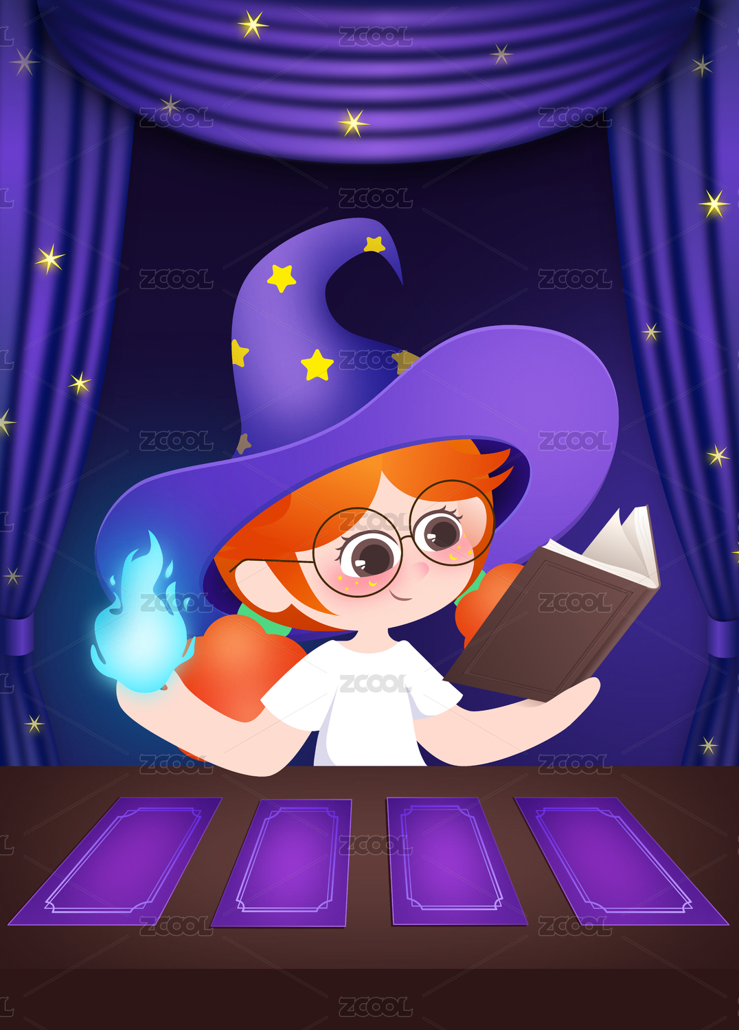 用蜡烛占卜的少女,深蓝色唯美动漫占卜插画
