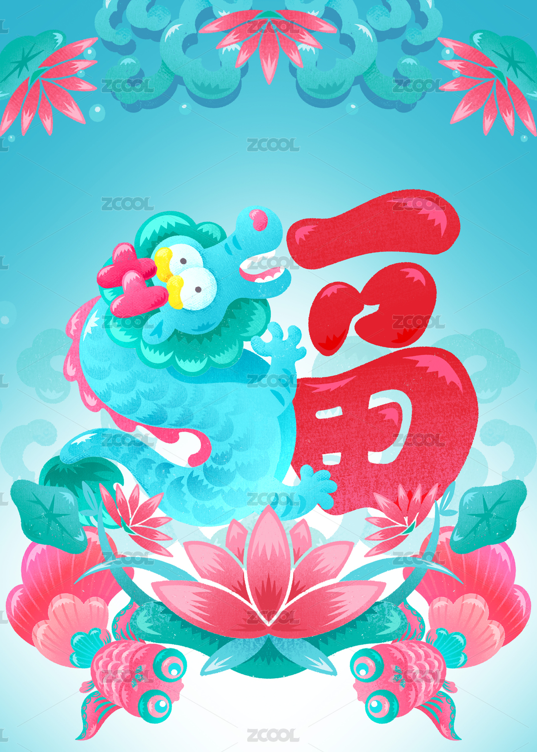 龙年春节创意字体福字设计
