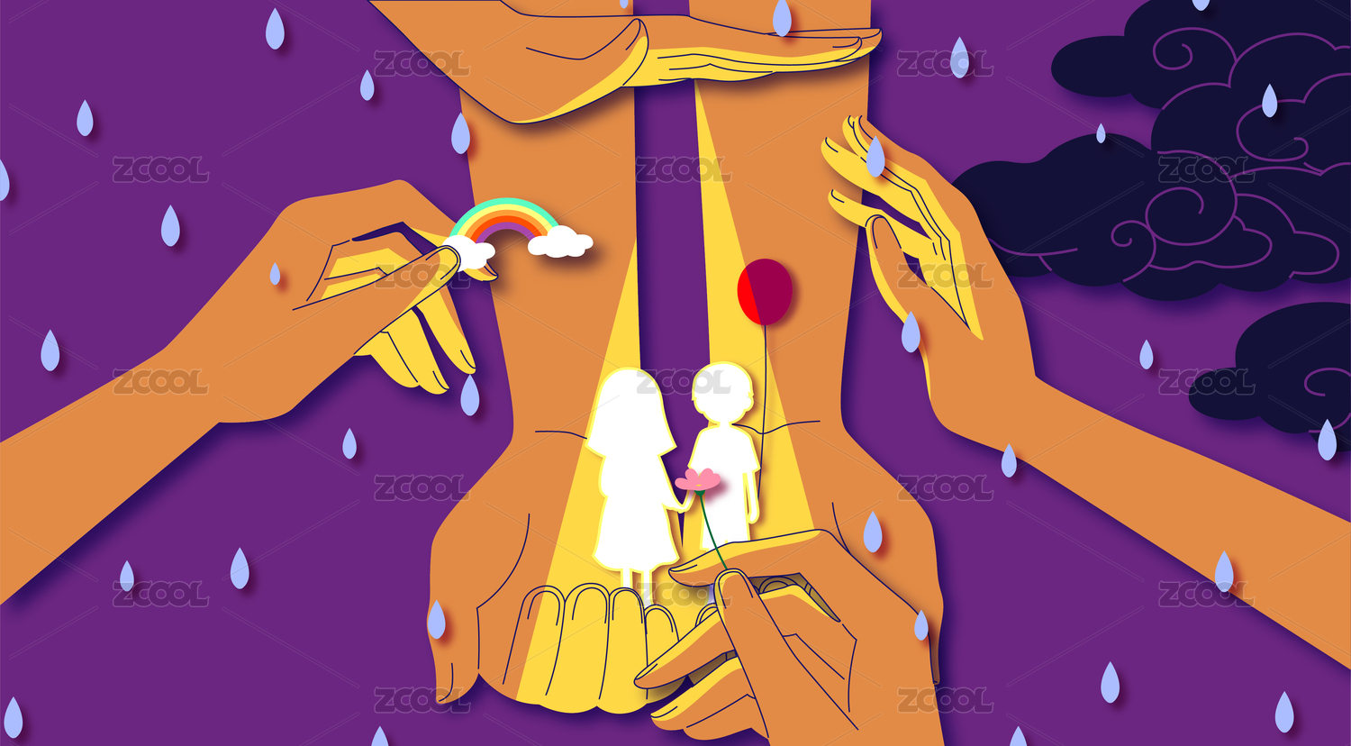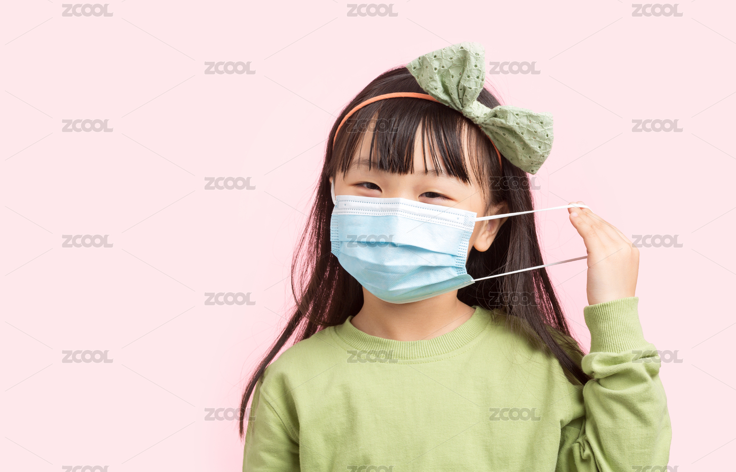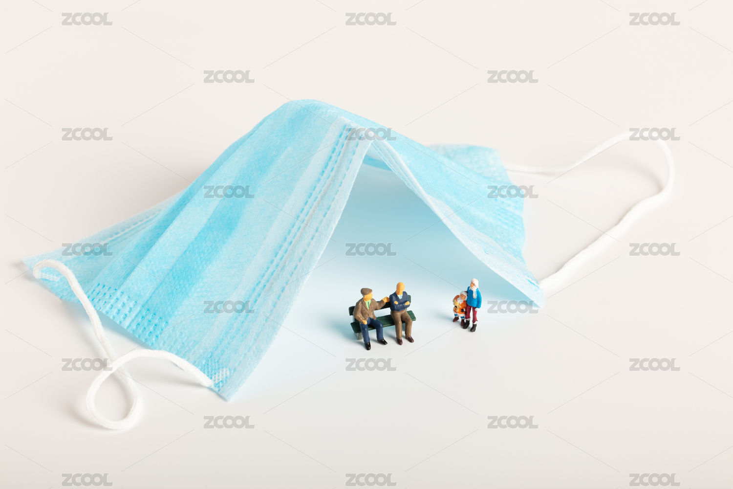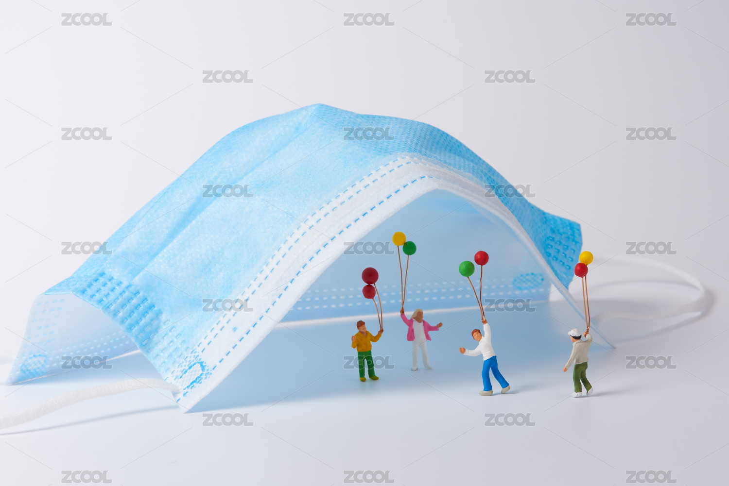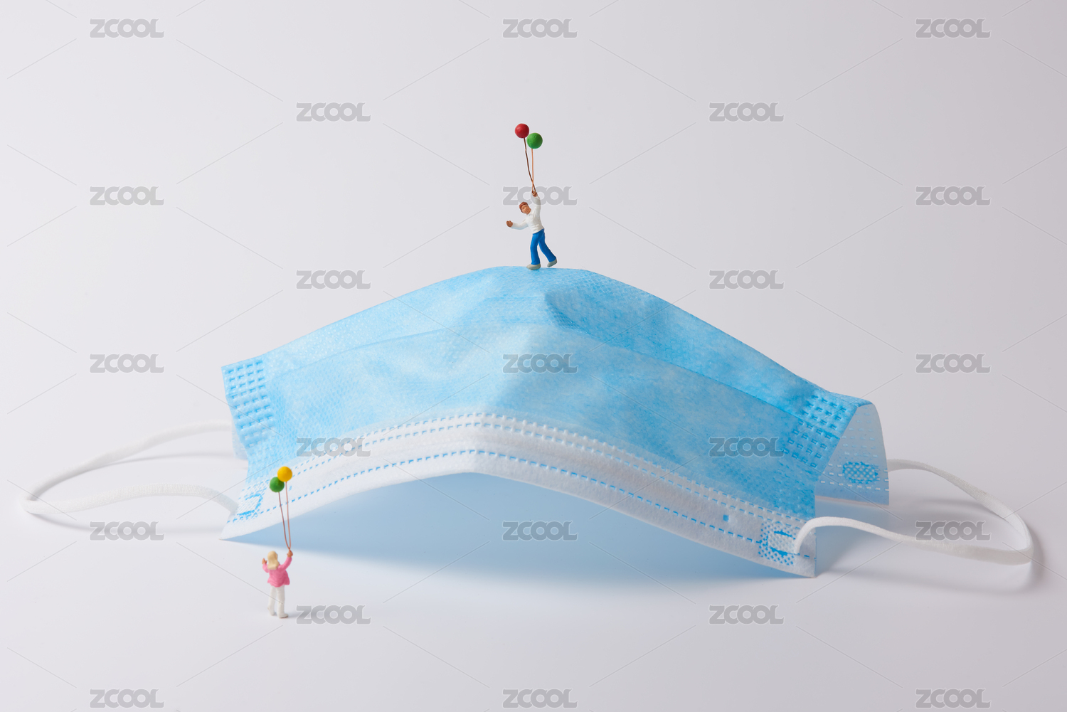 微缩创意在口罩保护下拿着气球玩耍的儿童