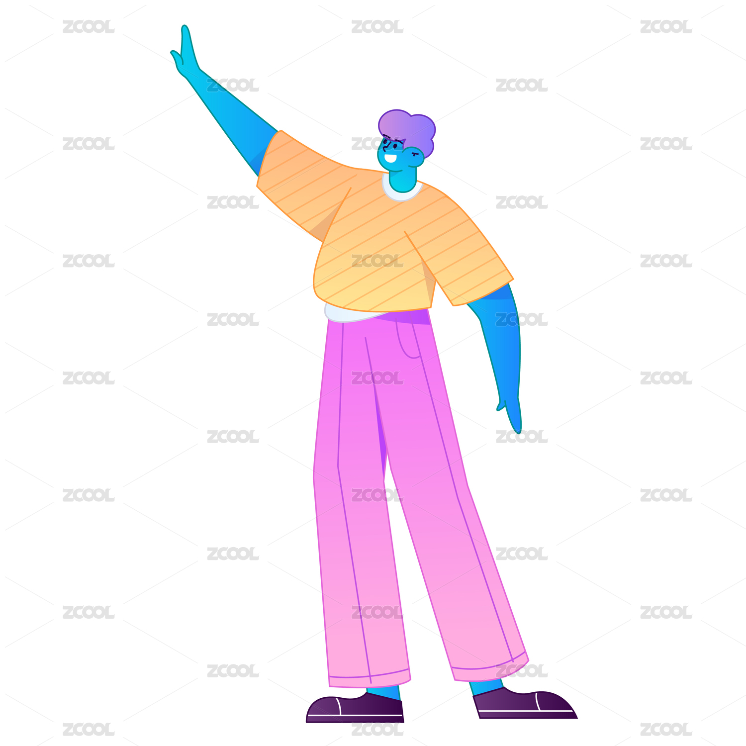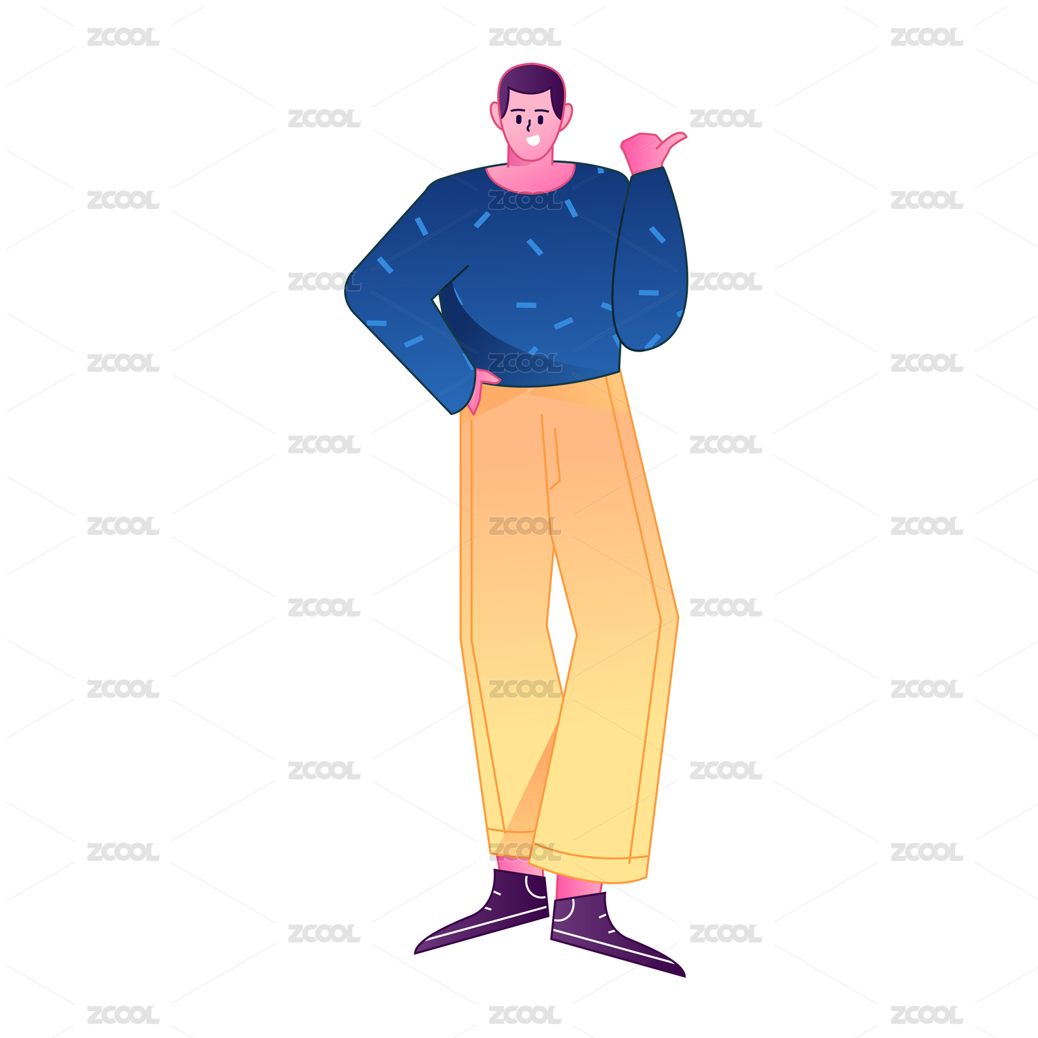 人物站姿肢体动作自信展示矢量扁平渐变插画