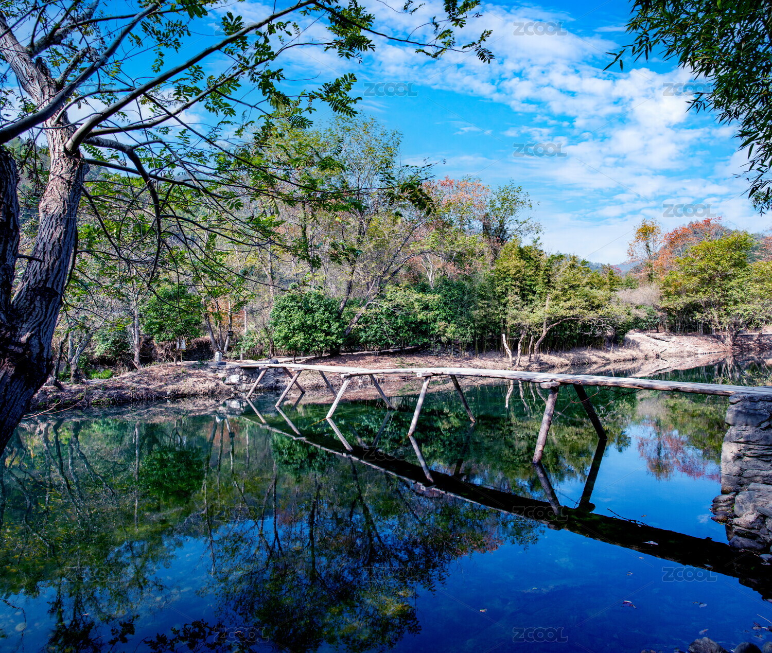 植物园小景水杉林小桥倒影