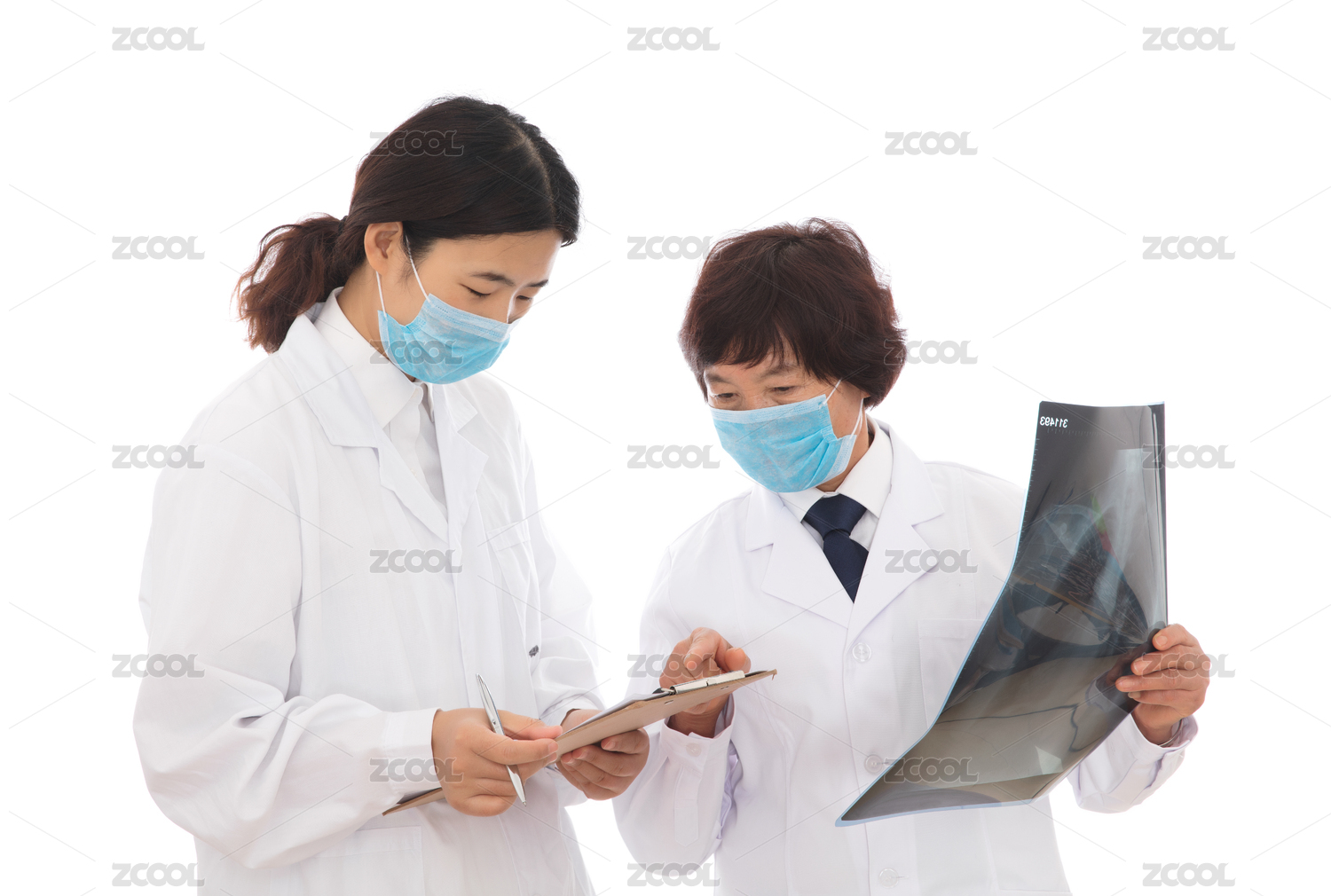 医生在为助手讲解冠状肺炎在X光片上的体现