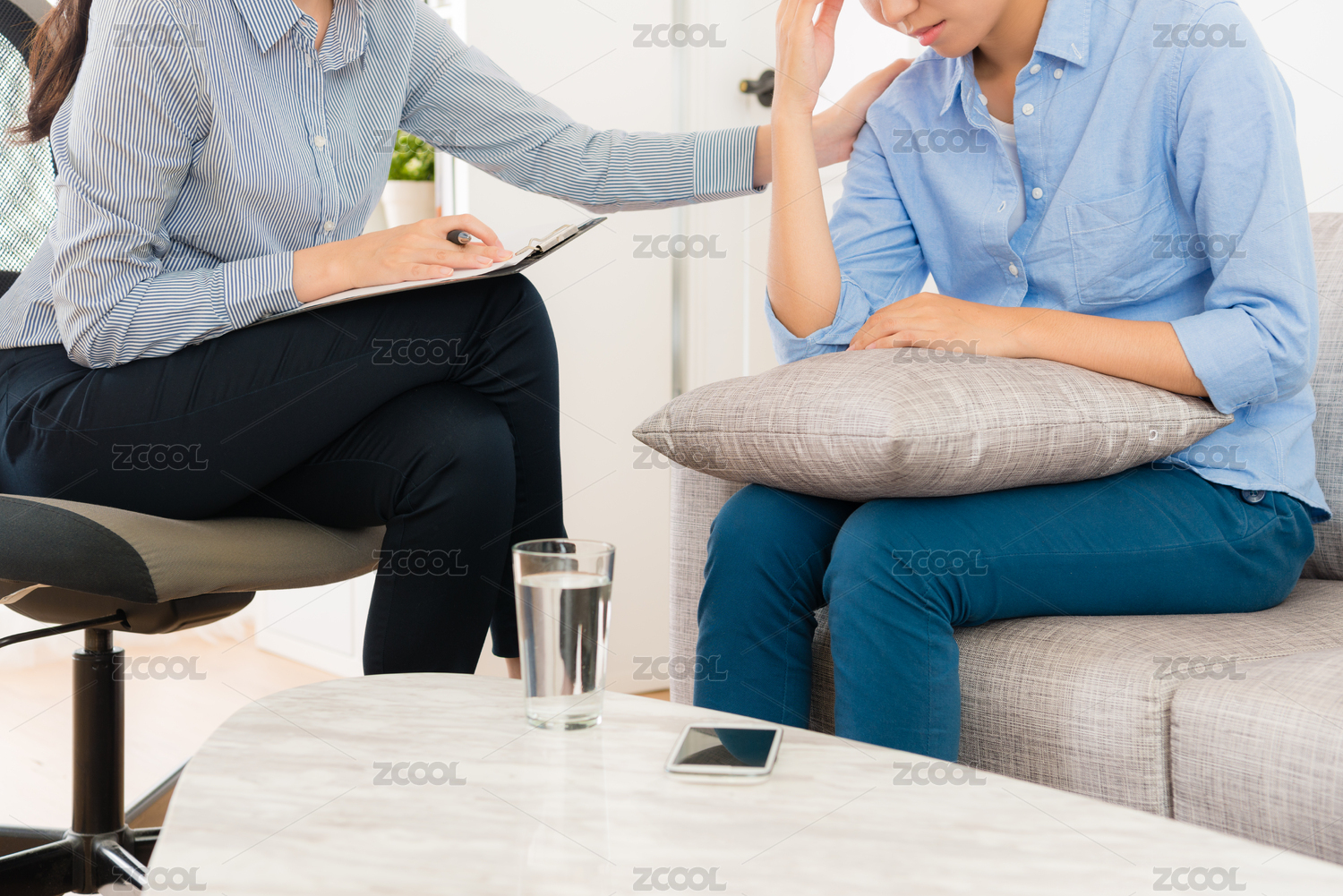 职业女性心理学家在办公室十几岁的女孩的工作,并与她的助手对治疗抑郁症说话。