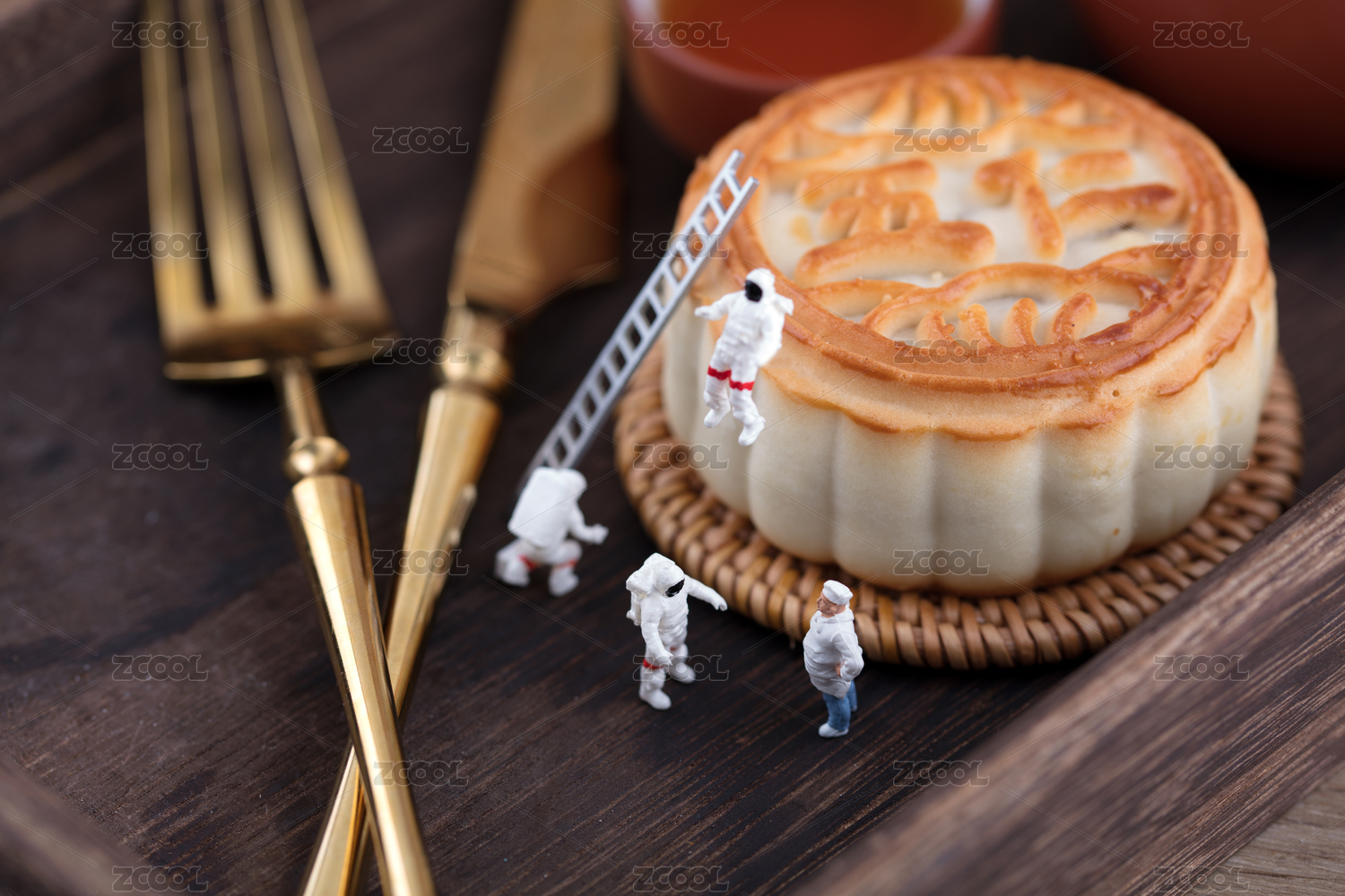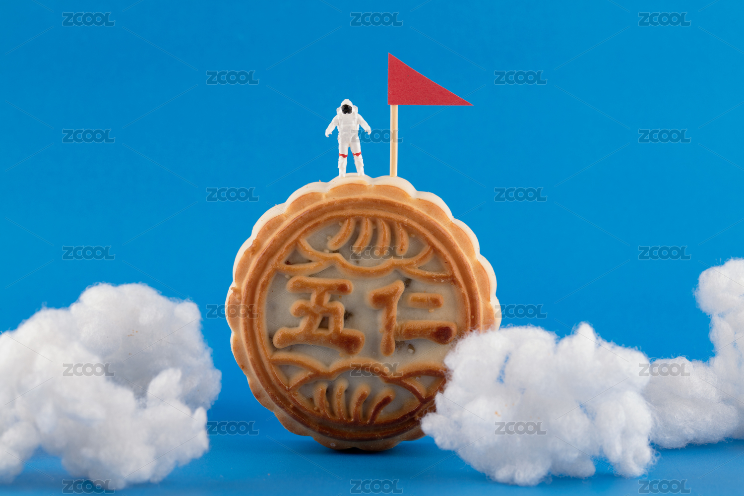 微缩创意宇航员在月饼上登月