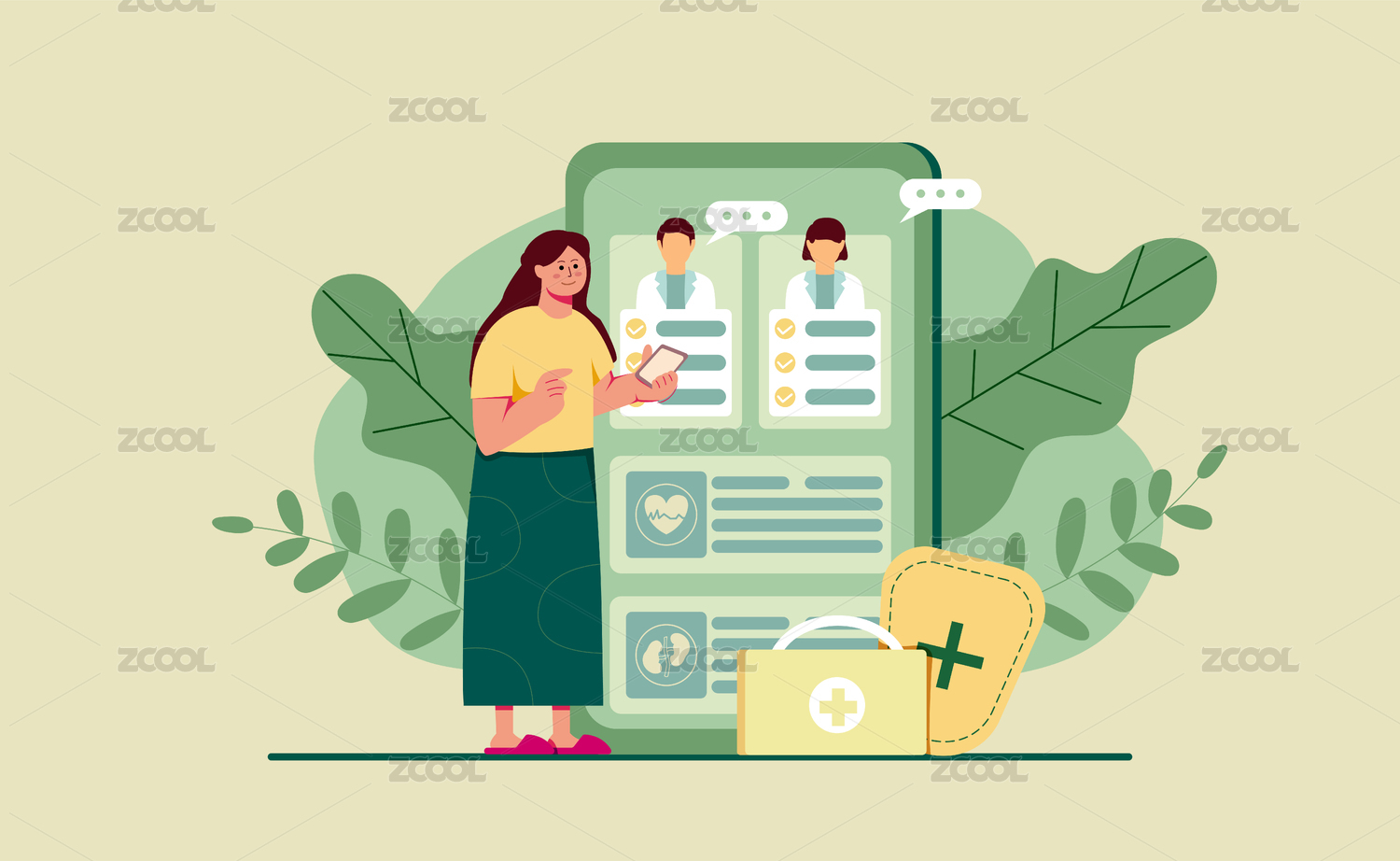 线上预约看病医疗健康人物插画
