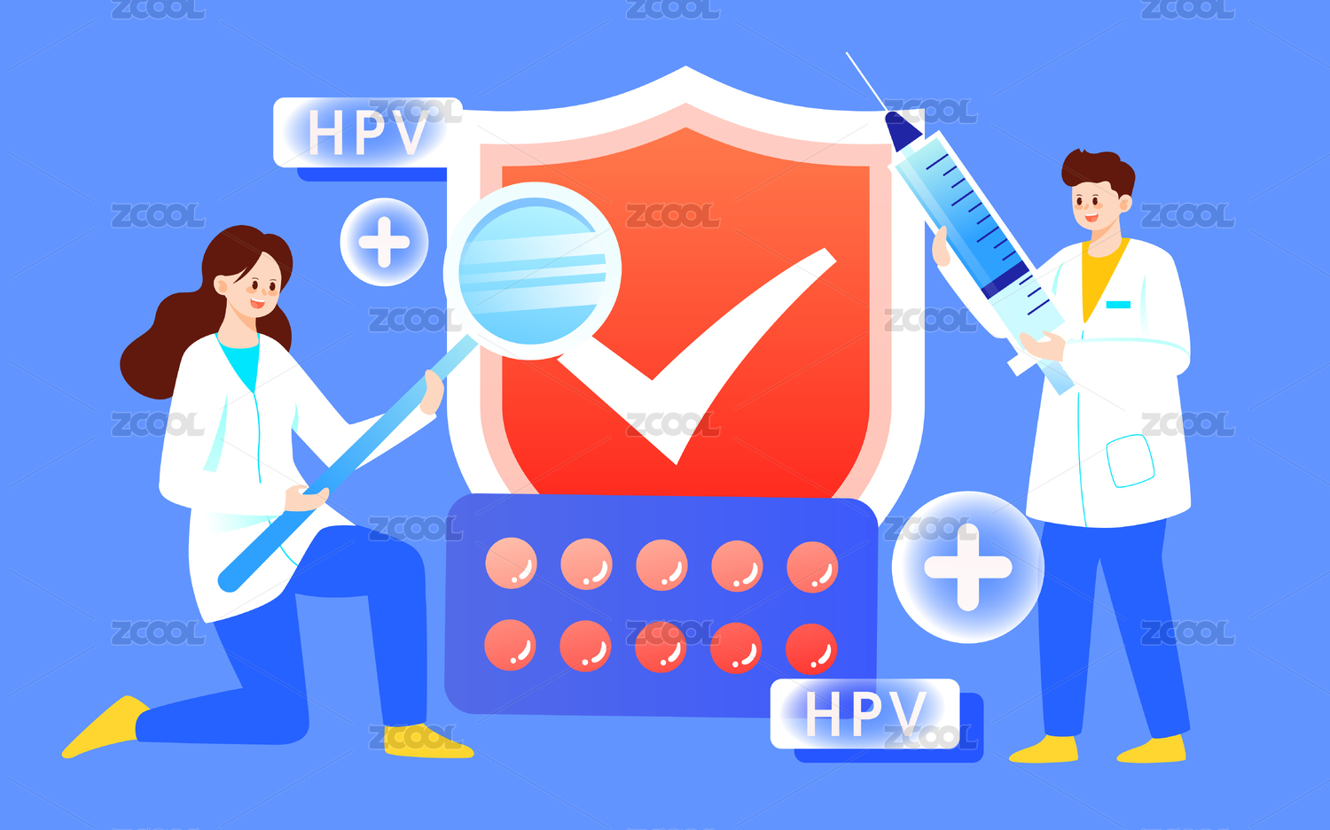 互联网HPV九价疫苗预约接种医疗健康插画