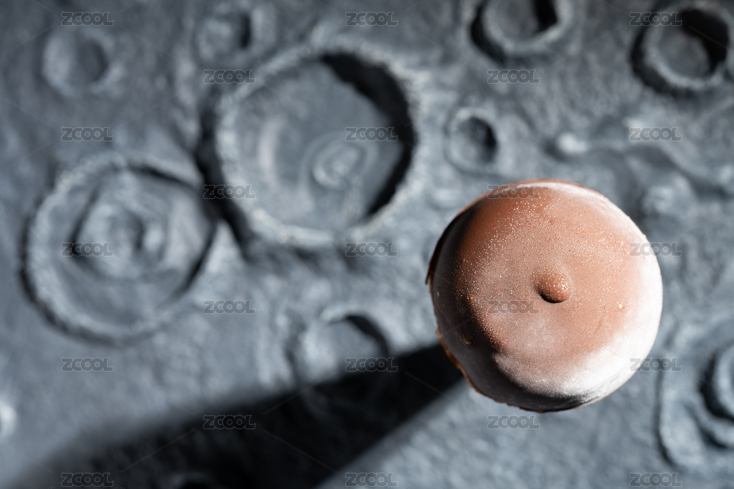 巧克力口味甜筒和陨石坑背景