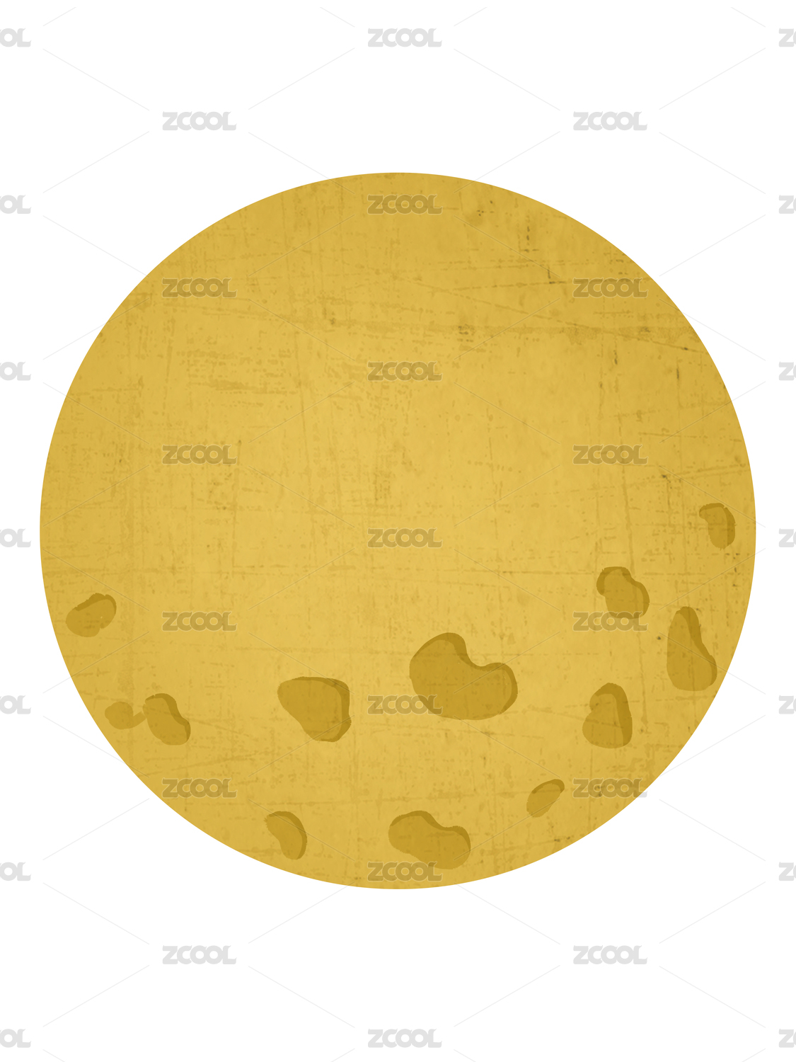 手绘黄色纹理上面有陨石坑的月亮