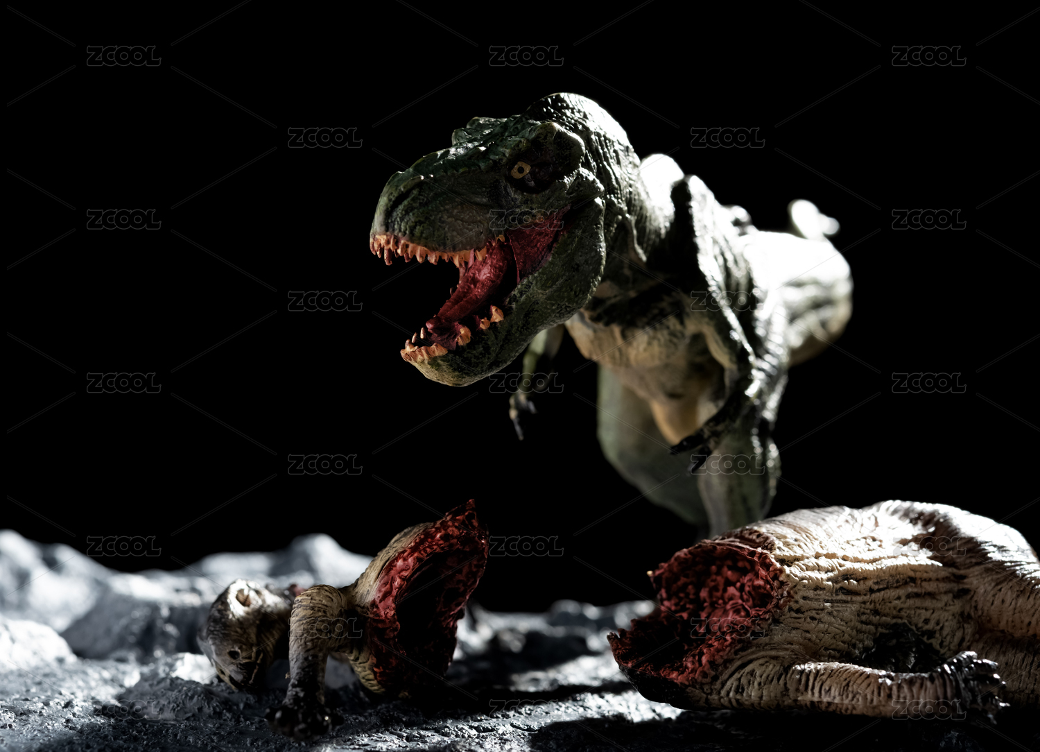陨石坑旁的霸王龙与剑龙尸体
