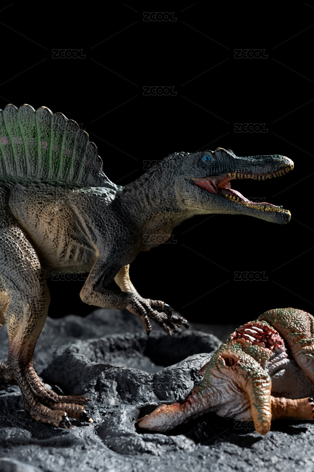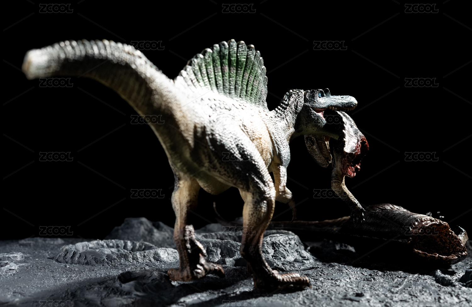陨石坑旁的棘龙叼着健龙尸体