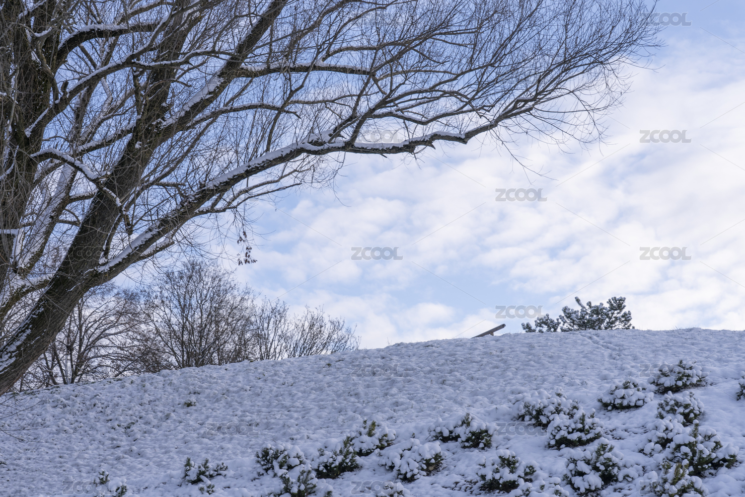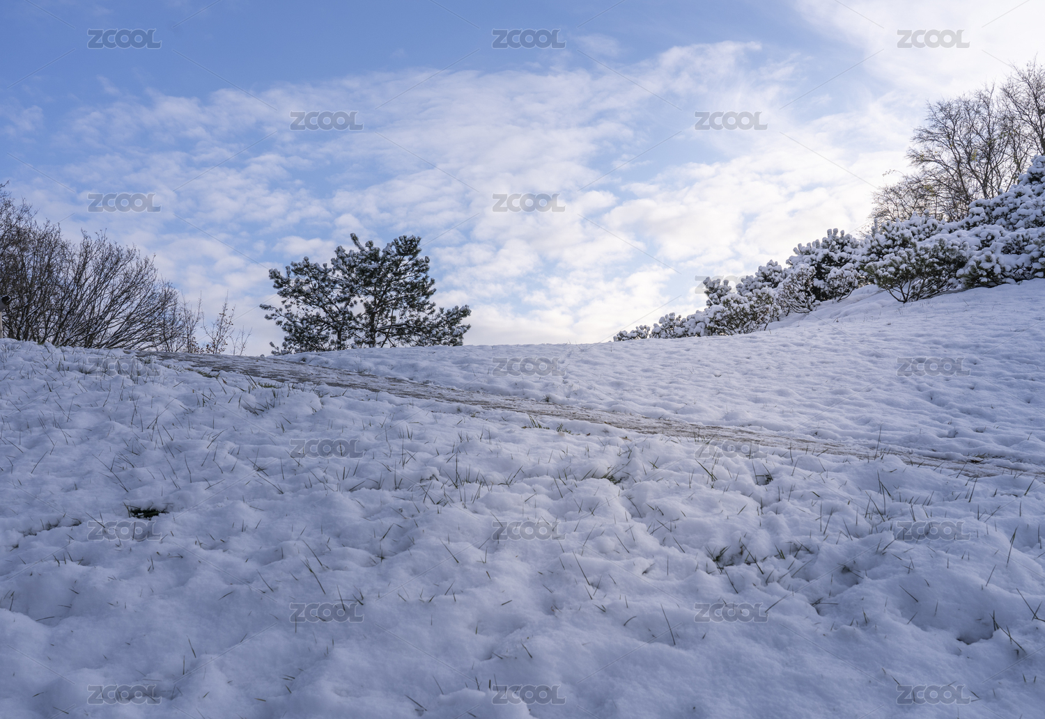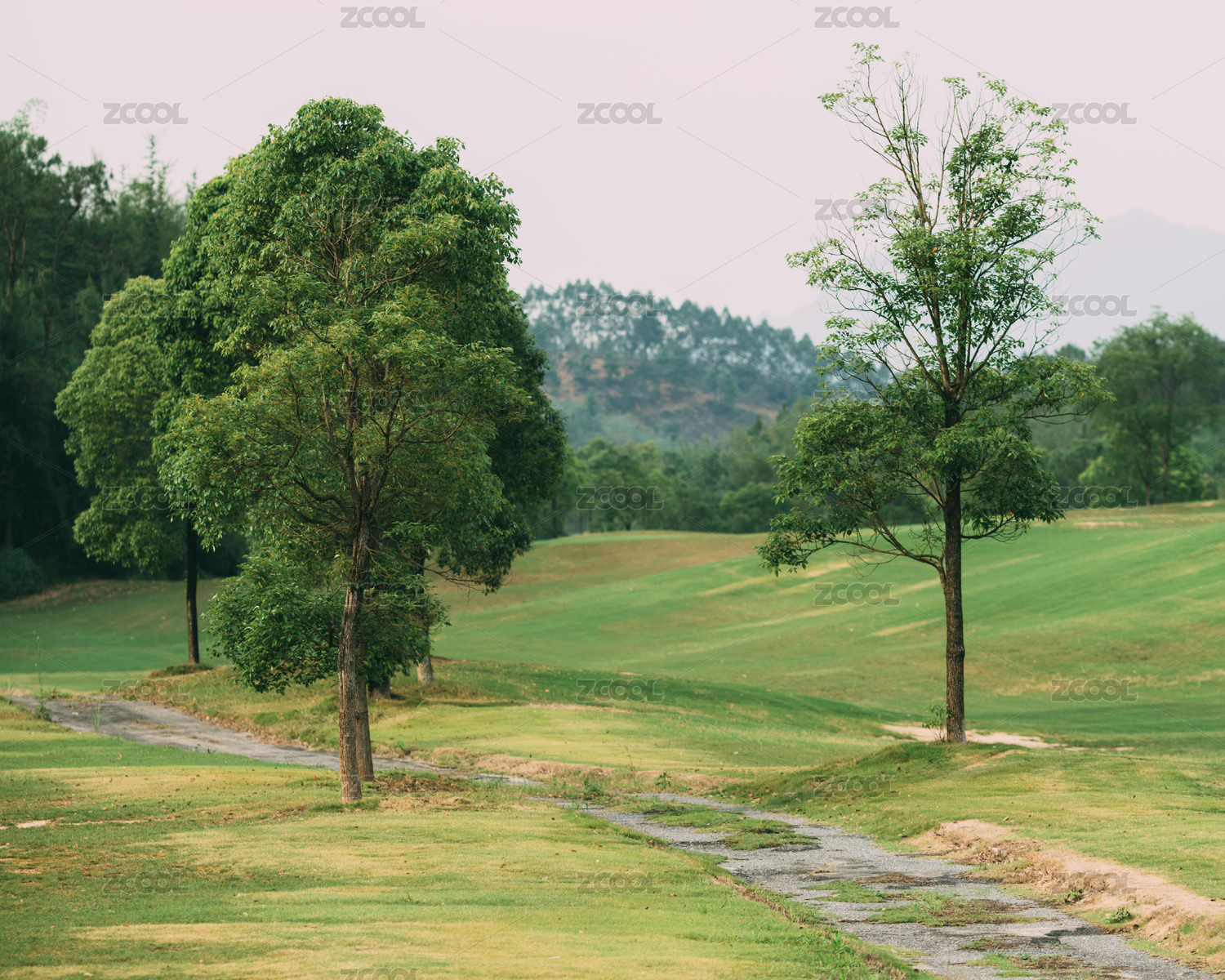 中国新疆巴音布鲁克草原小山坡的晨雾