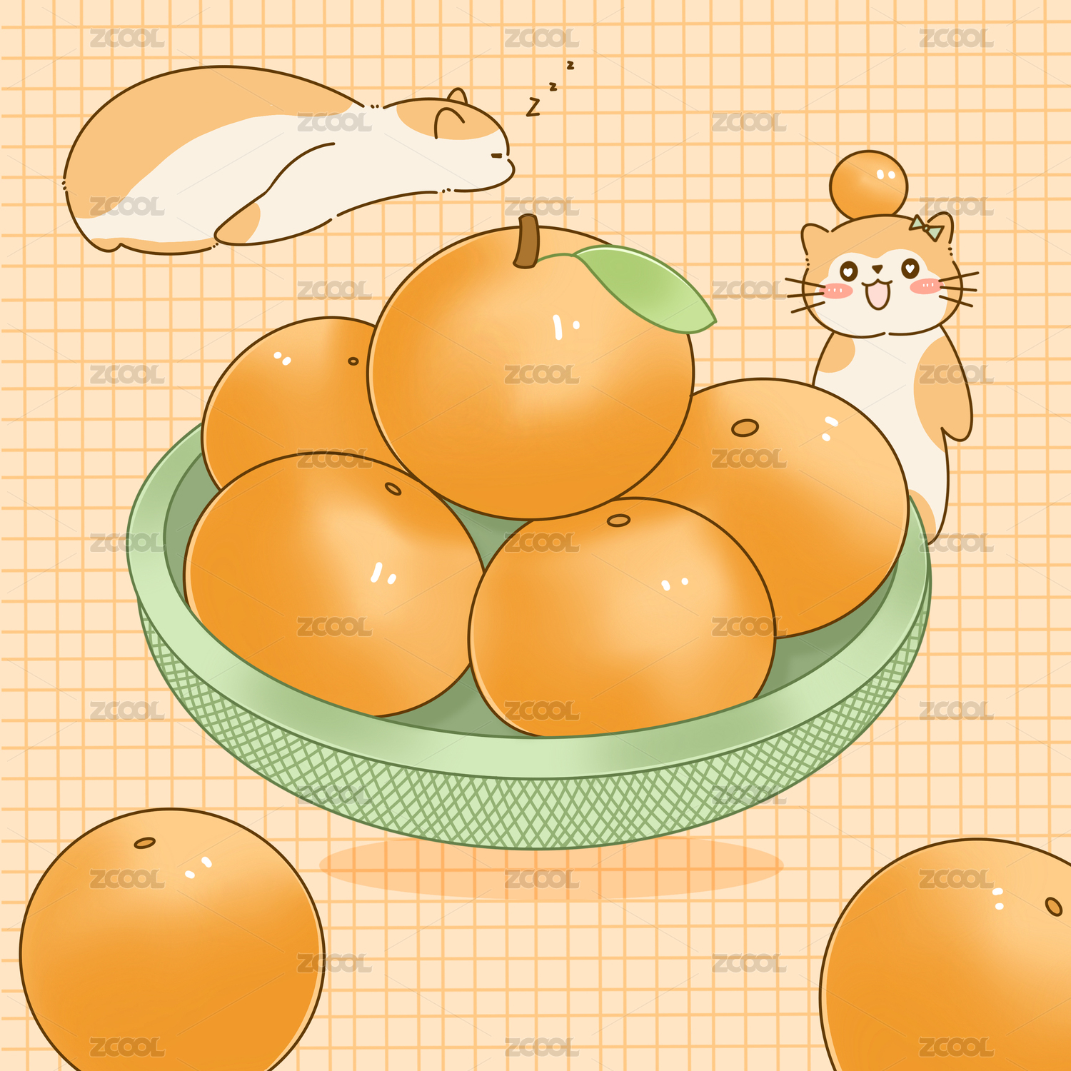 手绘橘子猫咪图案