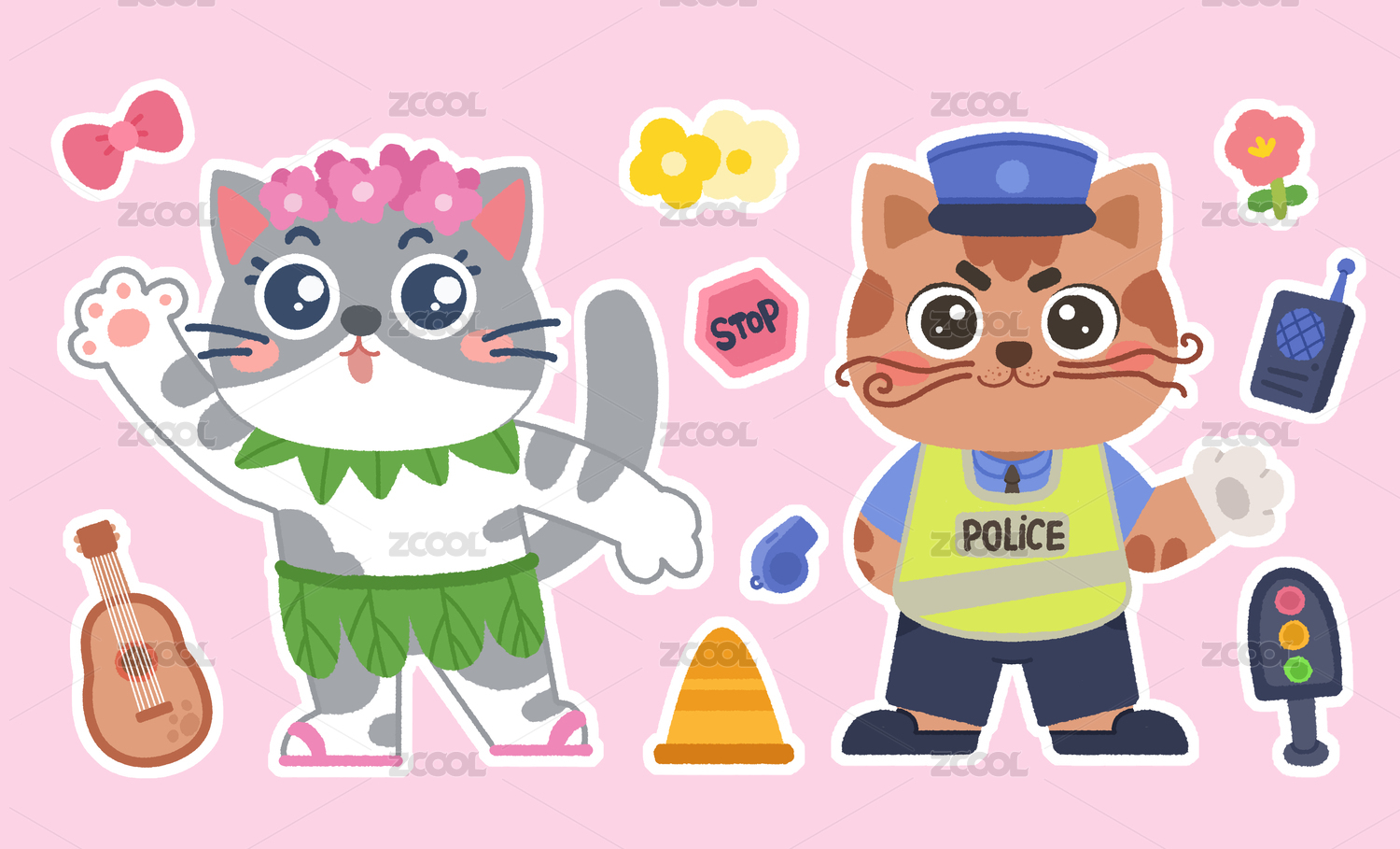 卡通猫咪贴纸图案