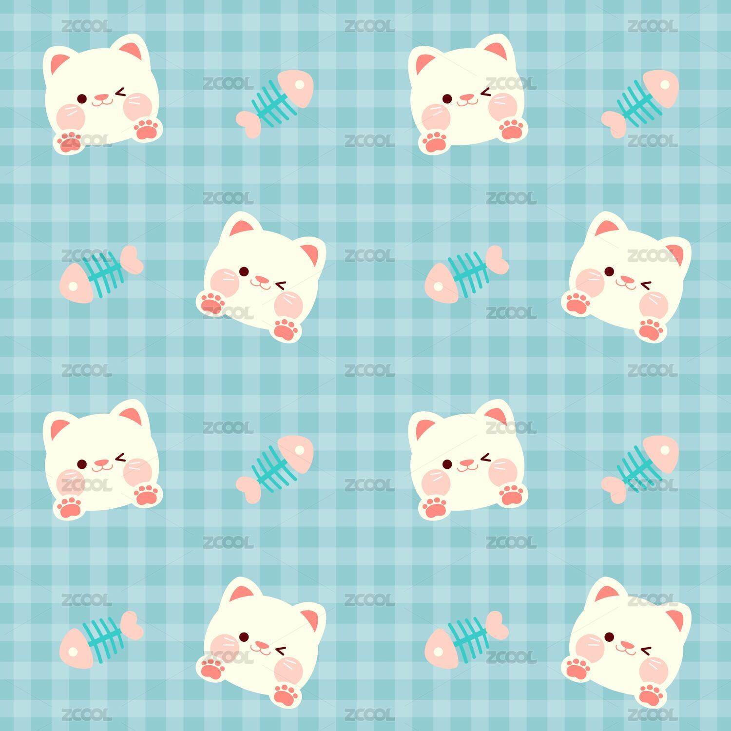 卡通猫咪图案 无缝拼接底纹