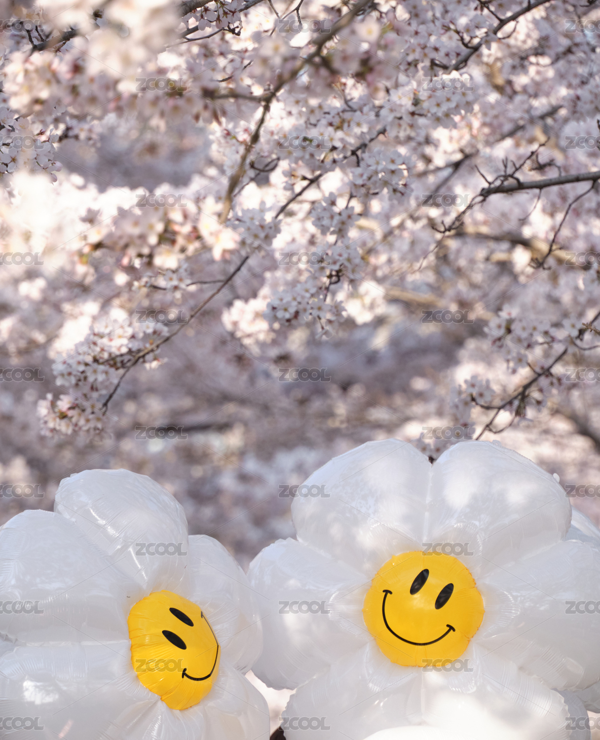 3D渲染的可爱的春天白色笑脸花植物花朵