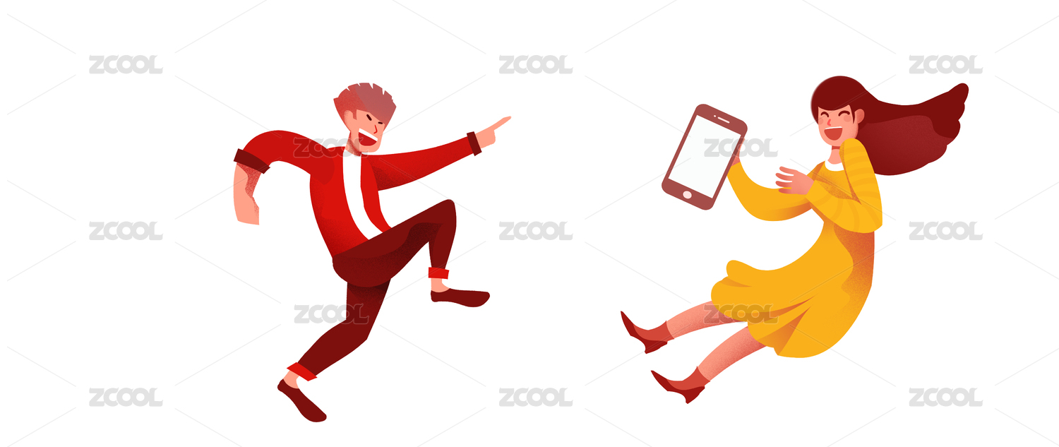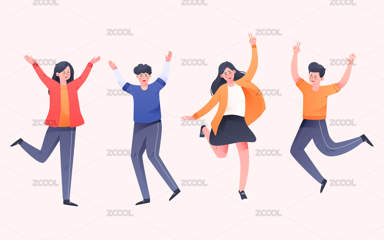 卡通手绘男生女生欢乐喜庆闪屏插画