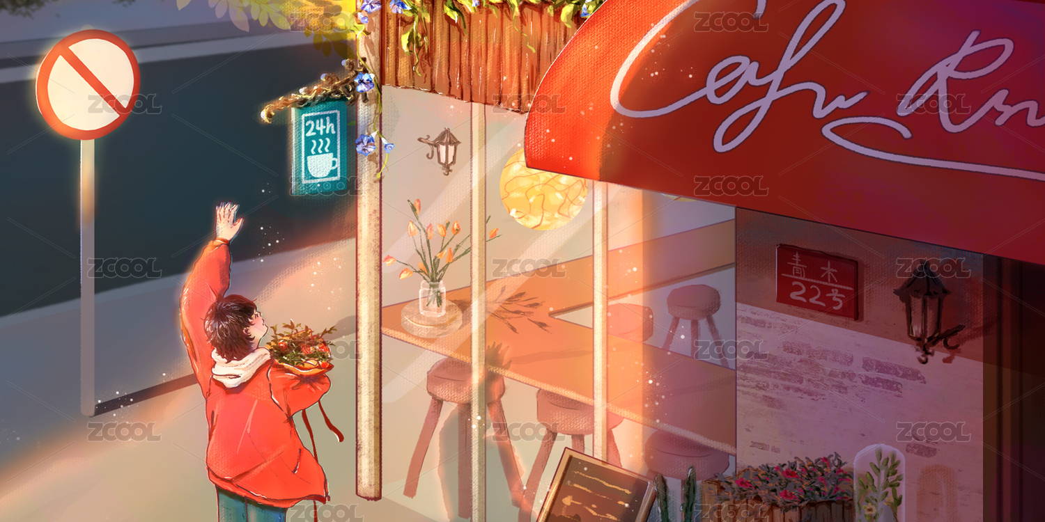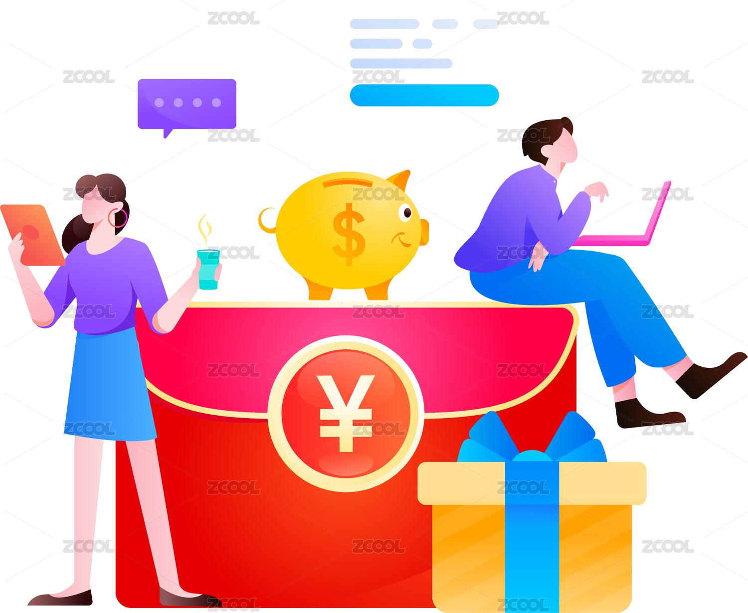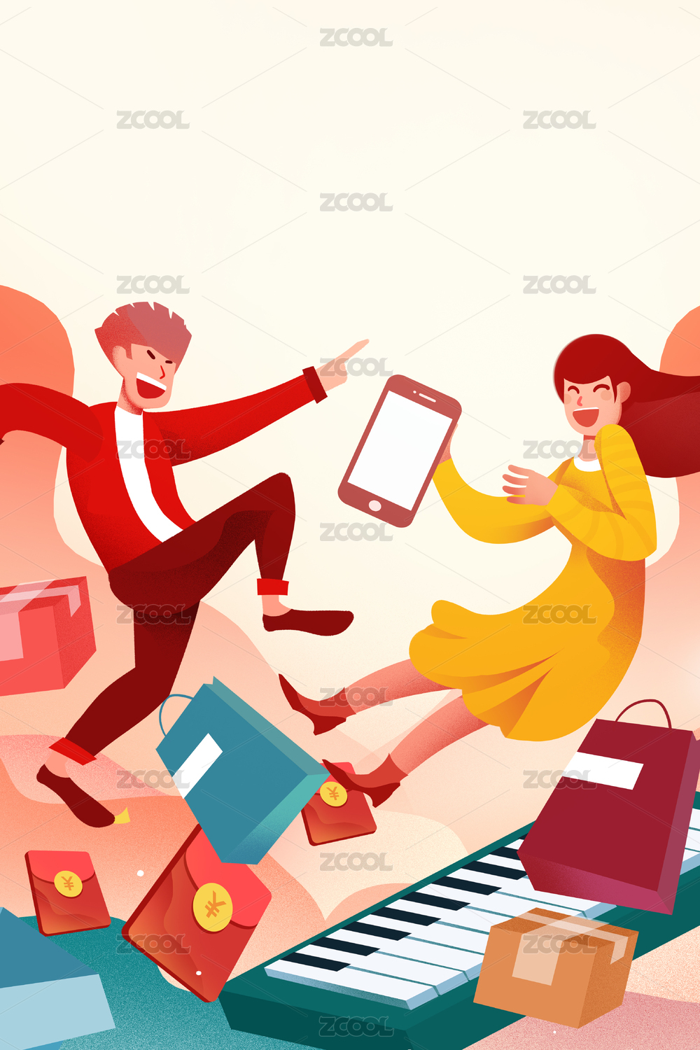 卡通手绘男生女生电商购物网购海报闪屏插画
