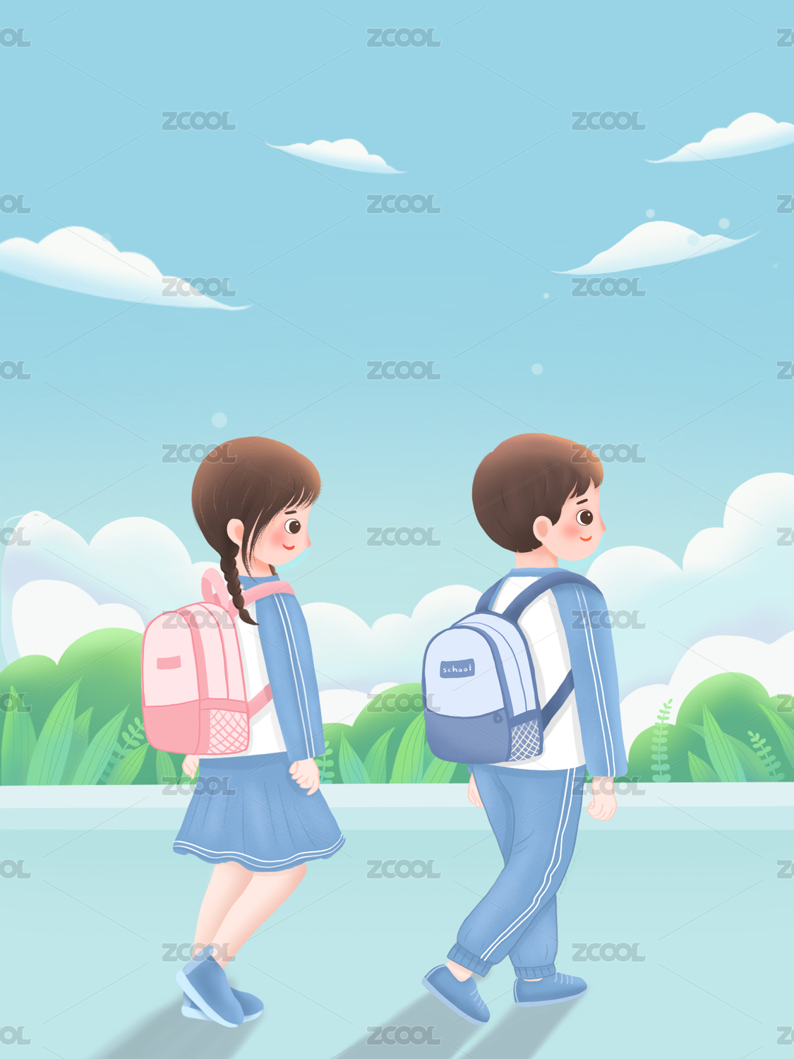 卡通男生女生快乐青少年人物帅哥矢量插画