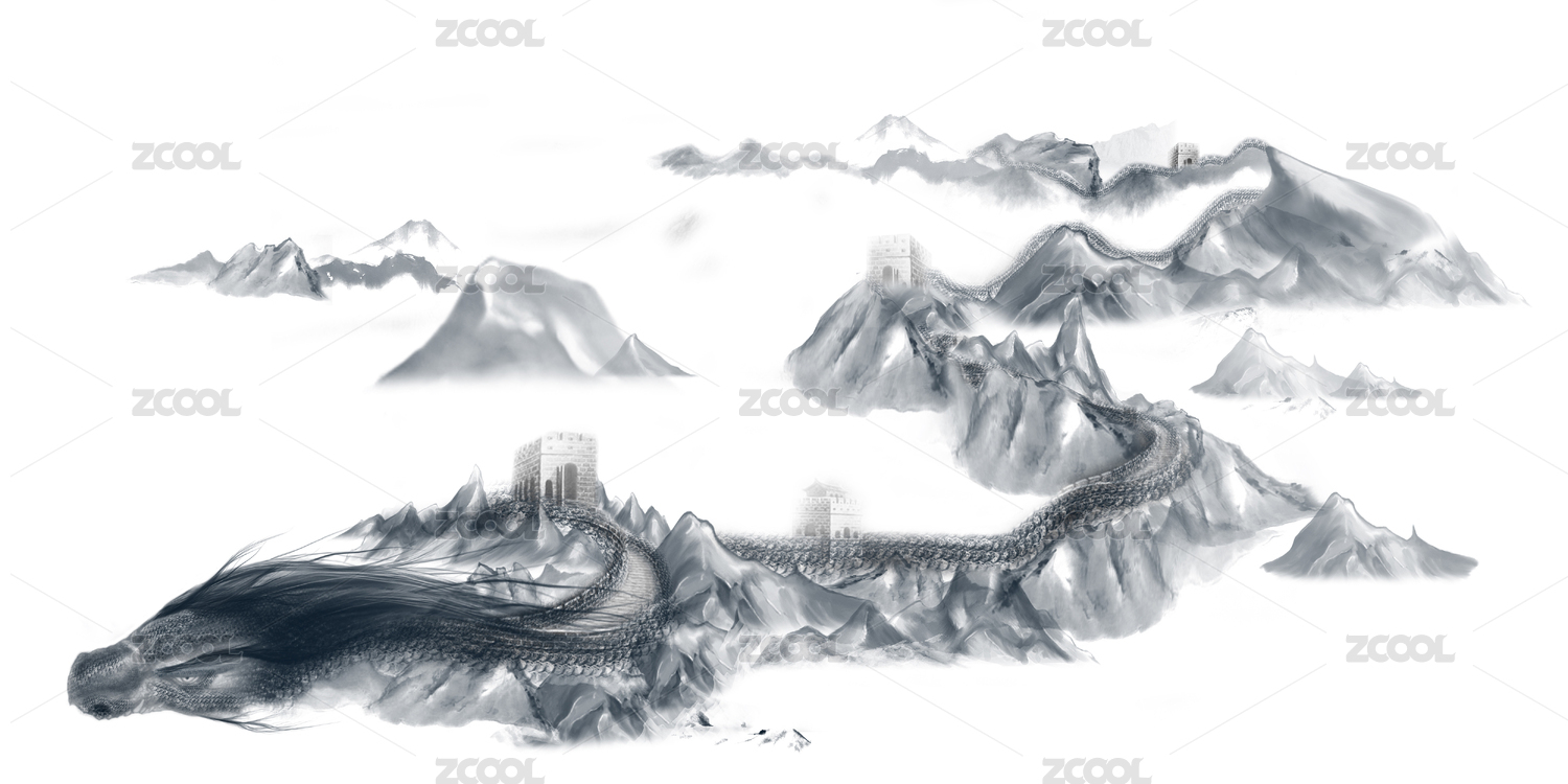 古典水墨风格的中国长城巨龙