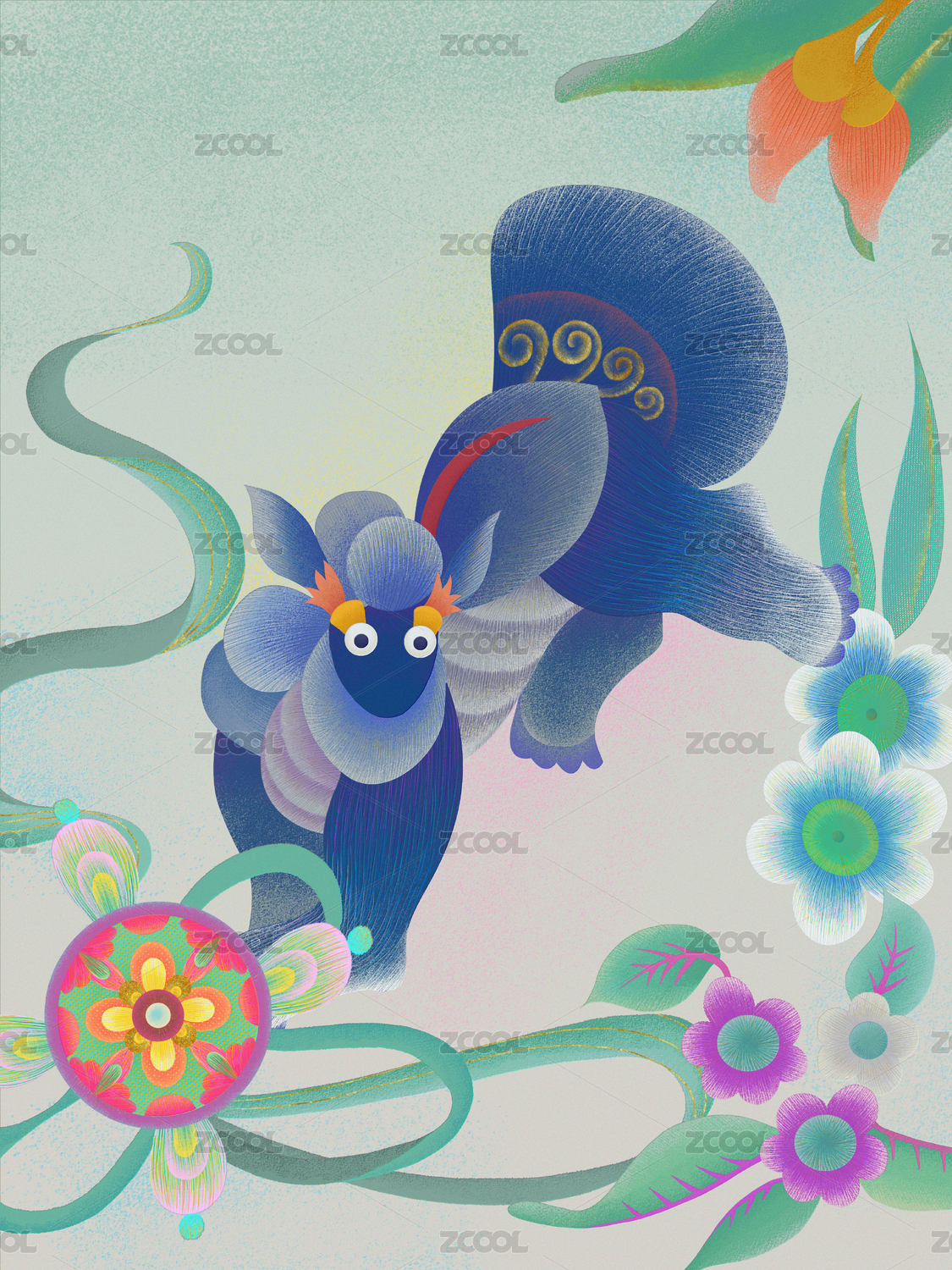 新中式桃源刺绣瑞兽插画吉祥花卉好运传统图