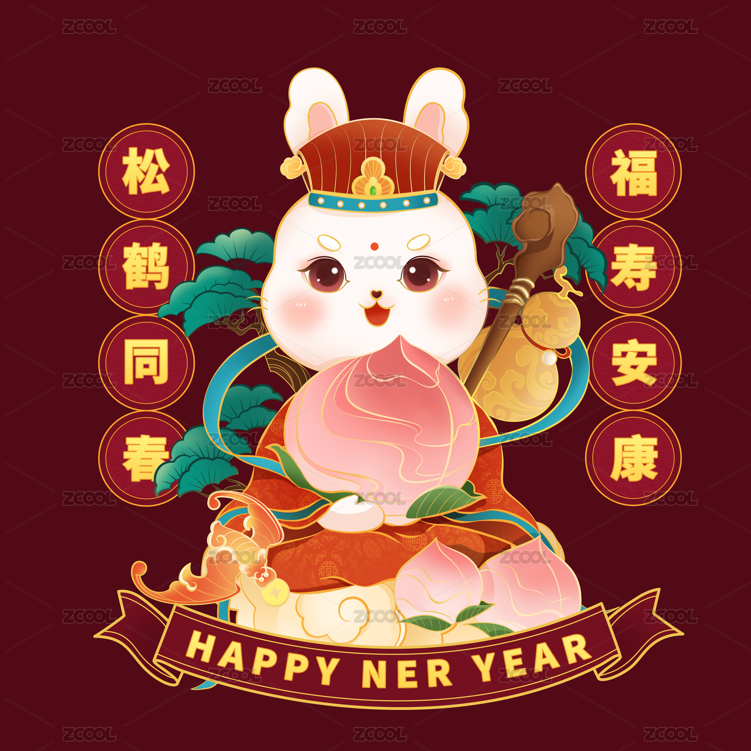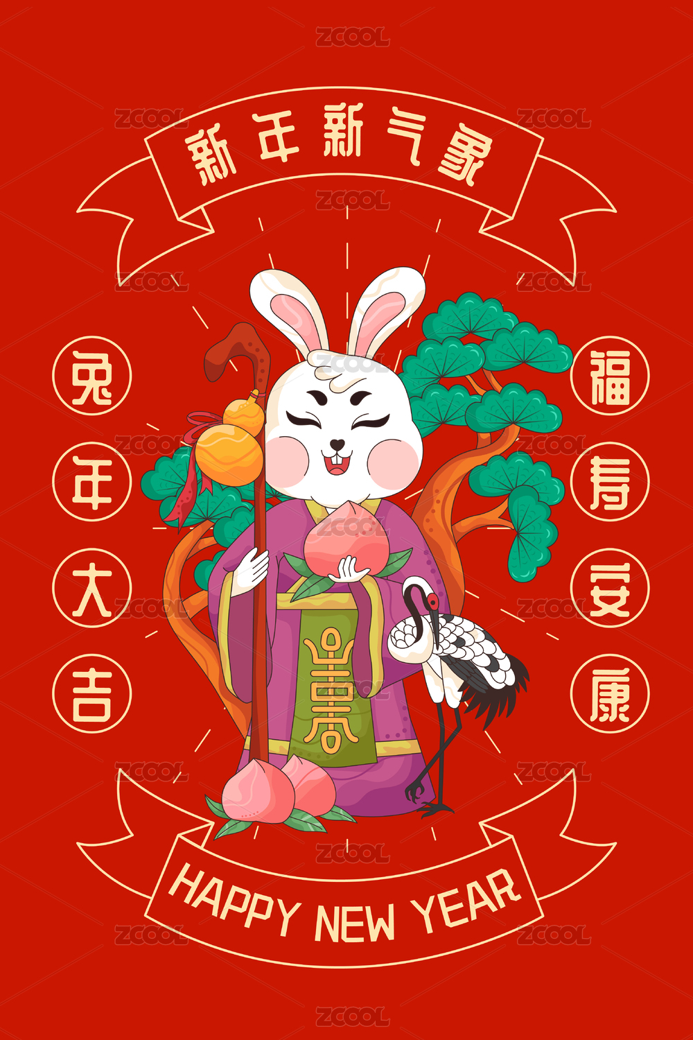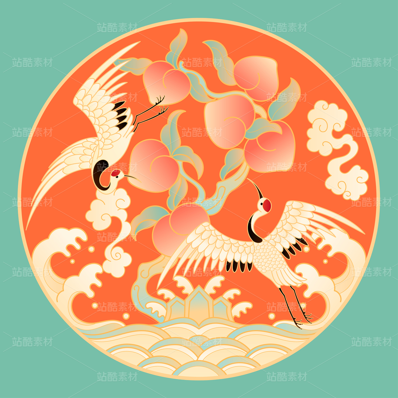 仙鹤寿桃祥云浪花吉祥福寿中国纹样国潮插画