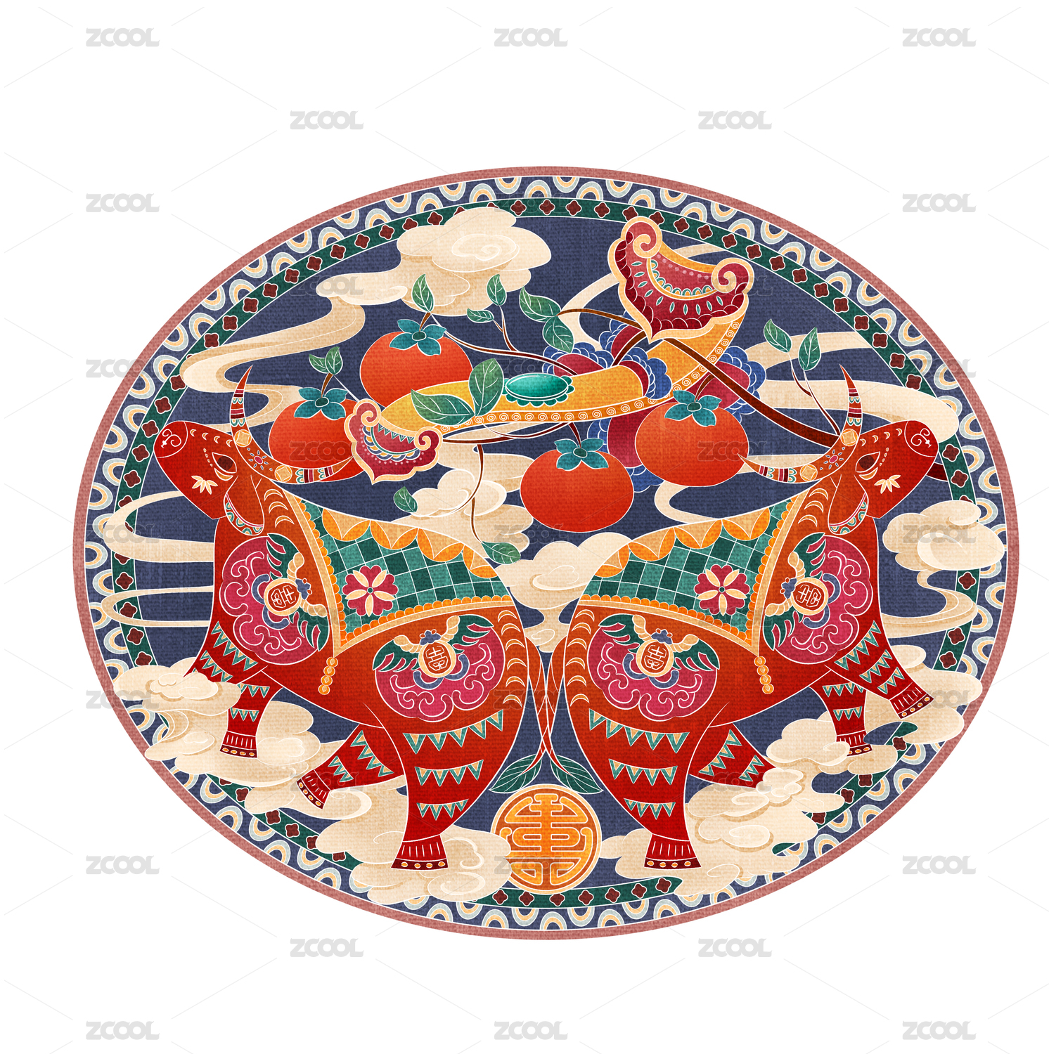 如意云纹蝙蝠寿桃福寿吉祥中国纹样国潮插画