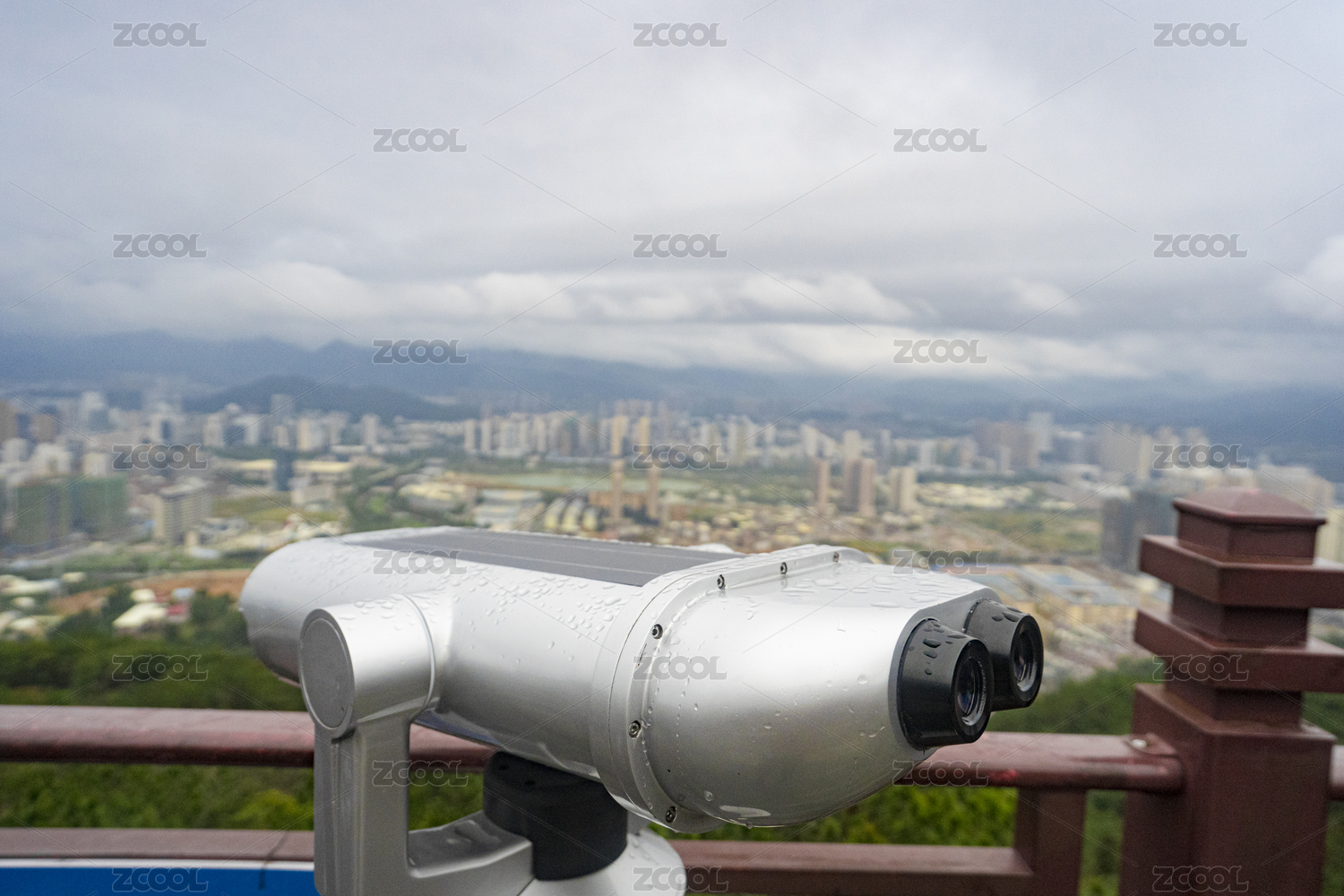 福建龙岩大锦山观景平台上的一个观光望远镜