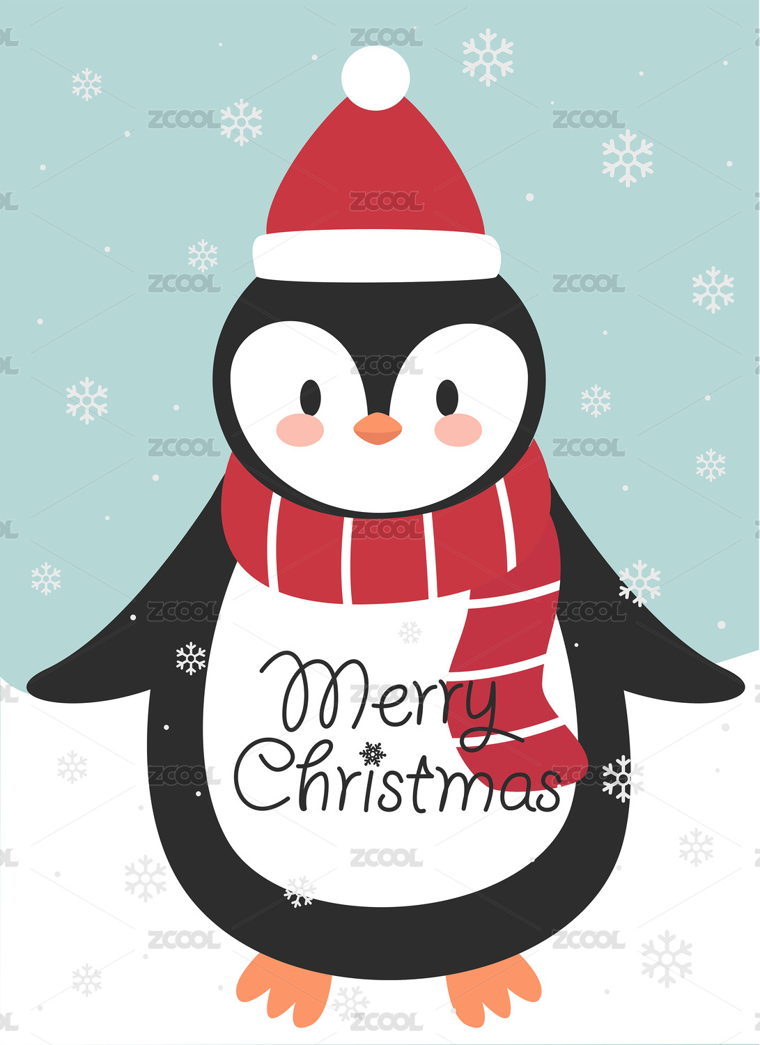 手绘涂鸦卡通圣诞企鹅插图